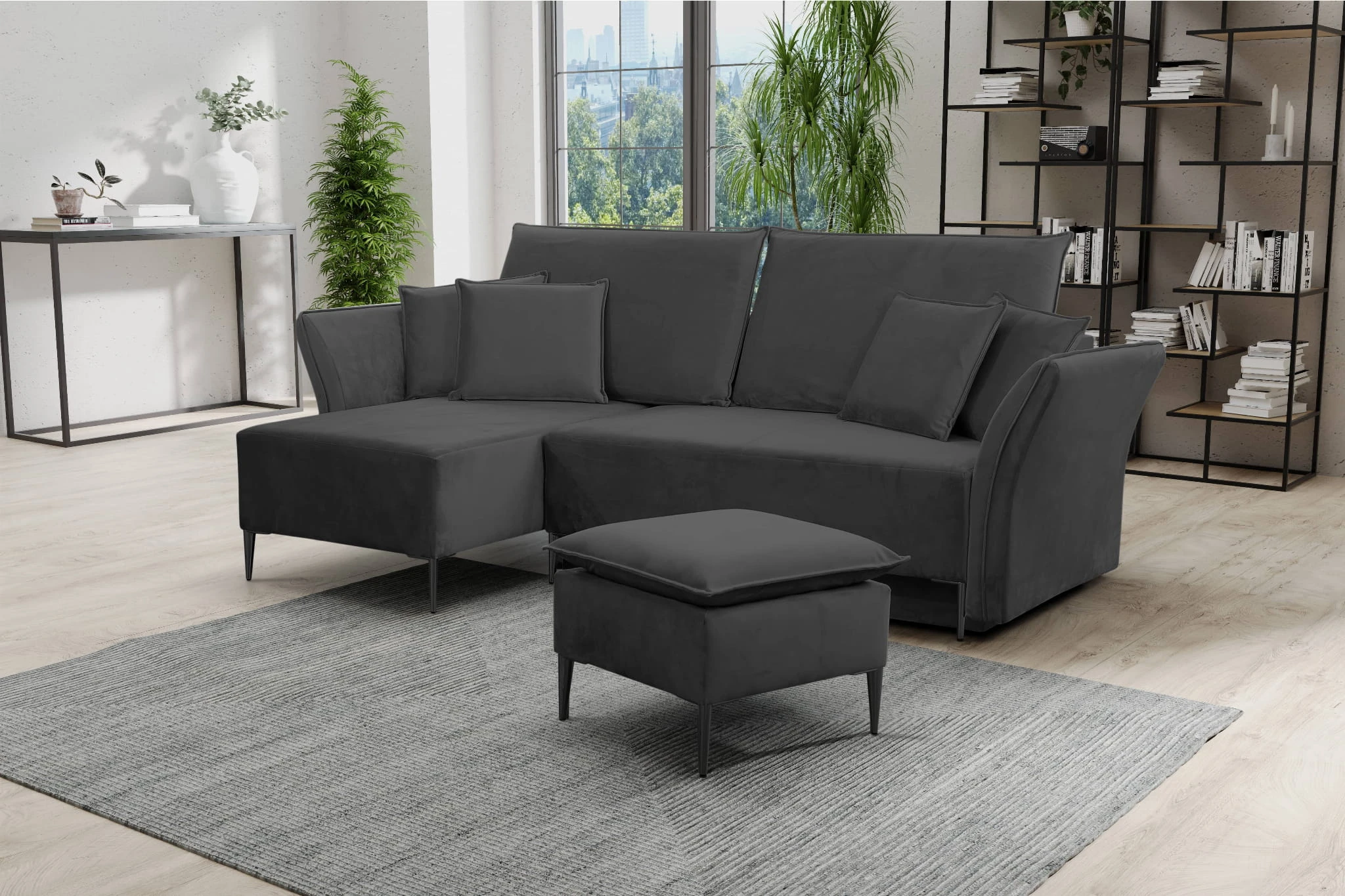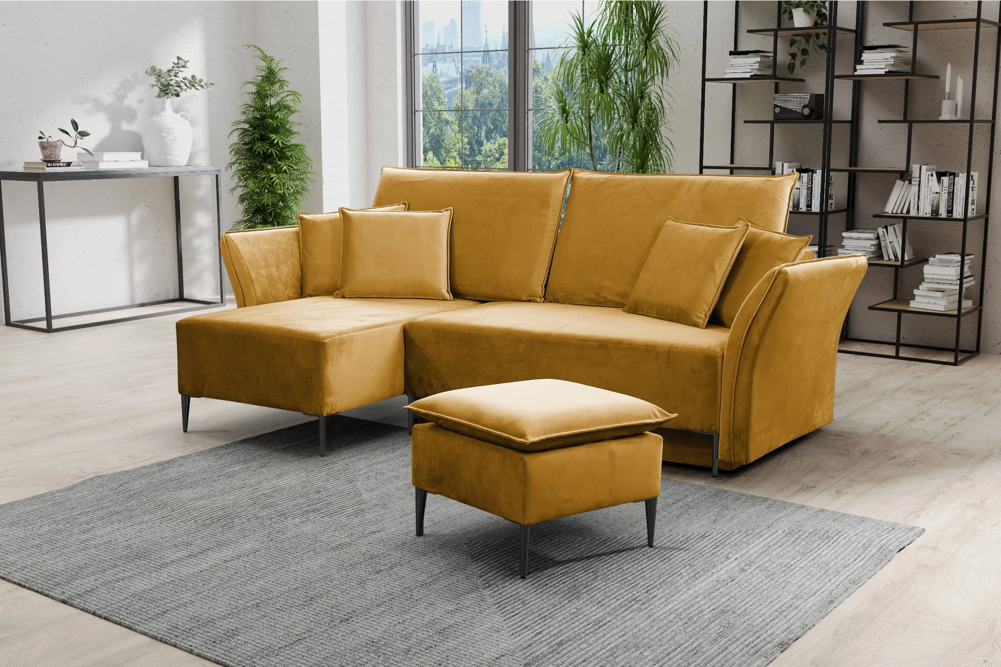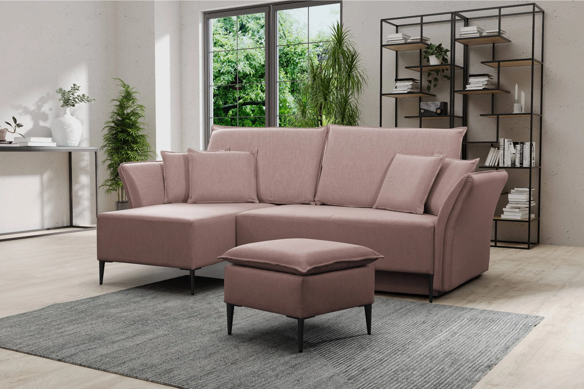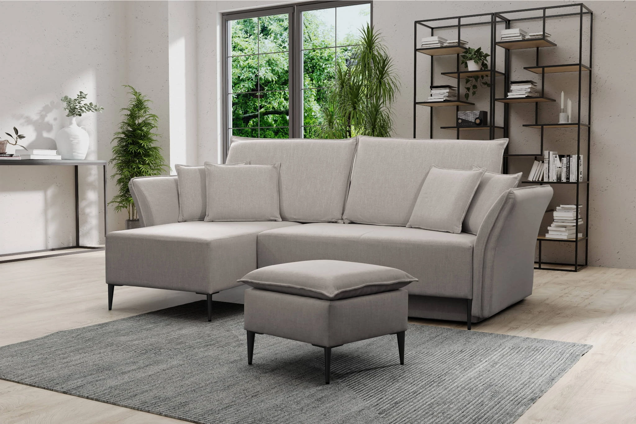 To nowoczesny narożnik z Seri Bregi która składa się z sofy oraz pufy, do wyboru mamy aż trzy kolory nóżek srebrne, złote oraz czarne.