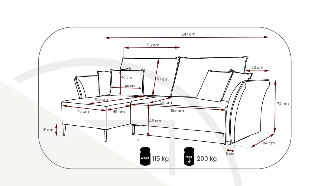 Kanapa posiada funkcję spania oraz duży pojemnik na pościel.