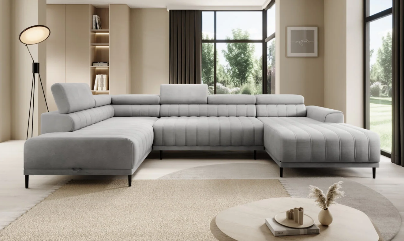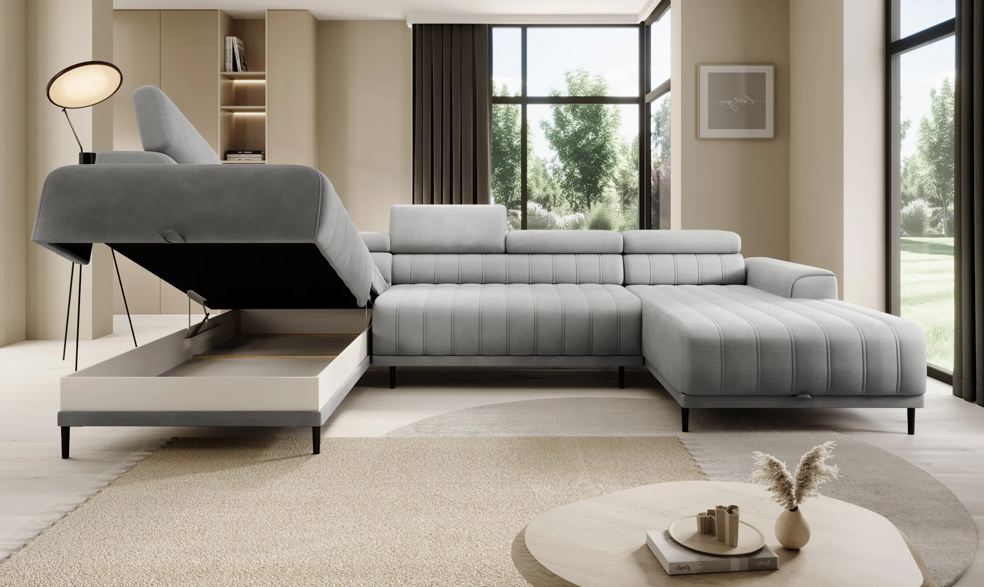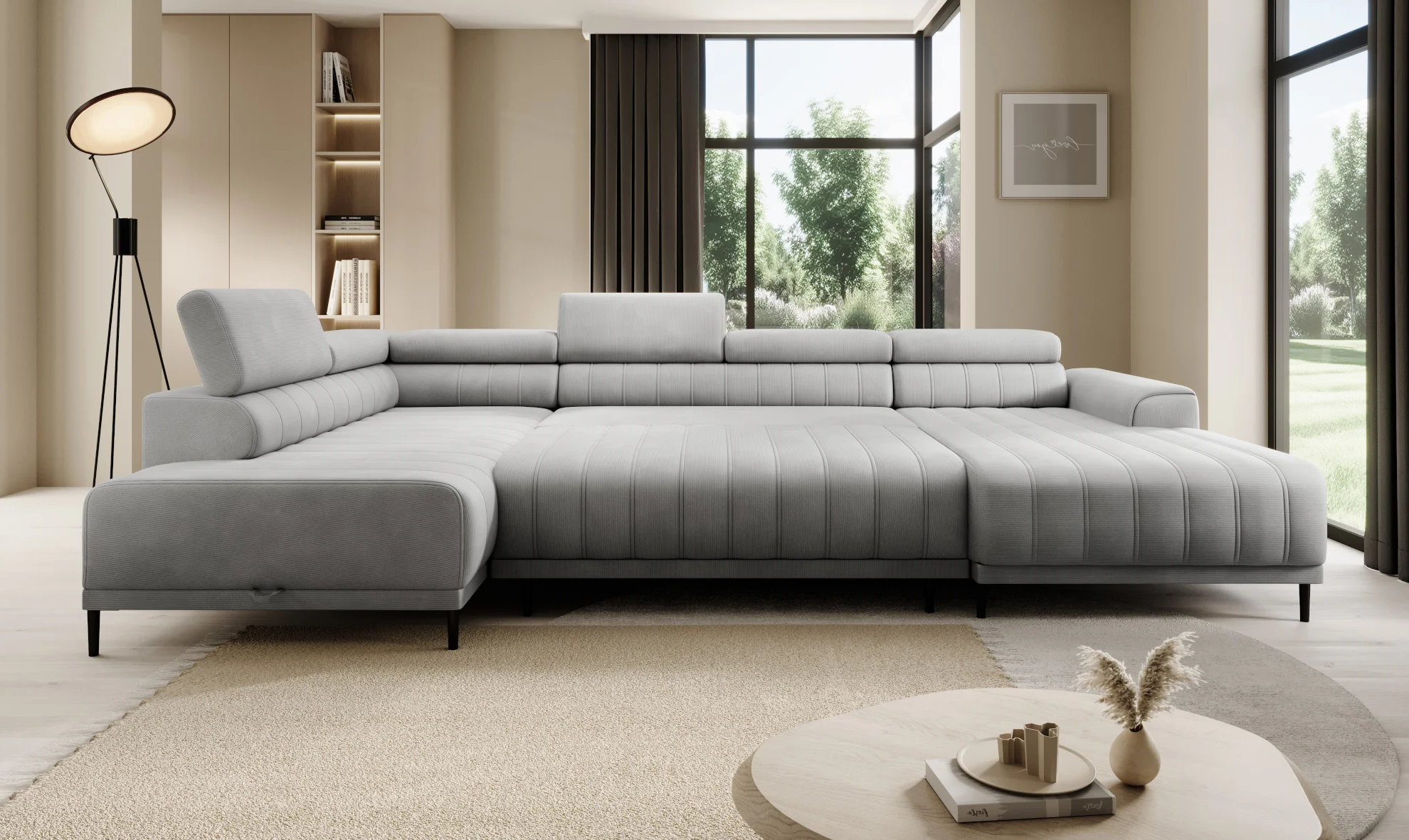 Narożnik CALDO XL Ruchome Zagłówki Funkcja Spania Pojemnik Nowoczesny Do Salonu