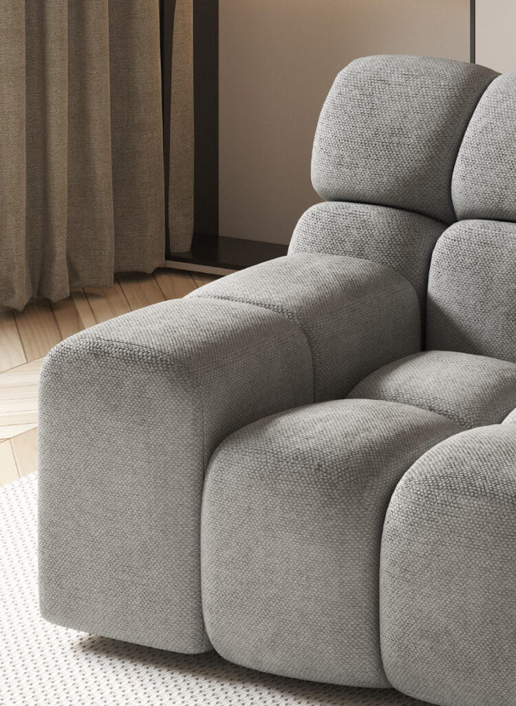 Narożnik CAMPILE posiada funkcję elektrycznego wysuwu siedziska aż do 27 cm! To rozwiązanie idealne dla tych, którzy lubią mieć możliwość wyboru - od kompaktowej pozycji do pełnego rozprostowania.
