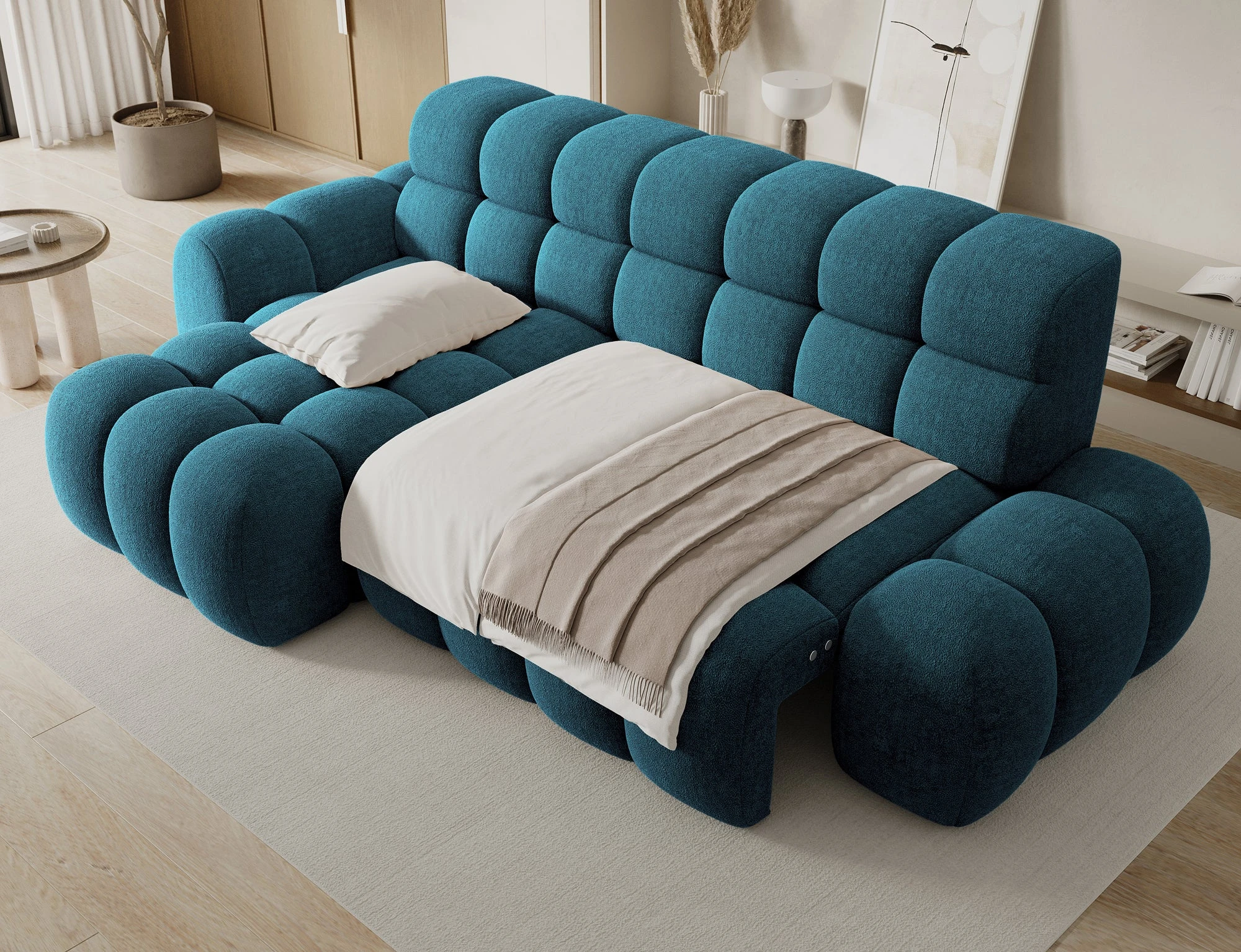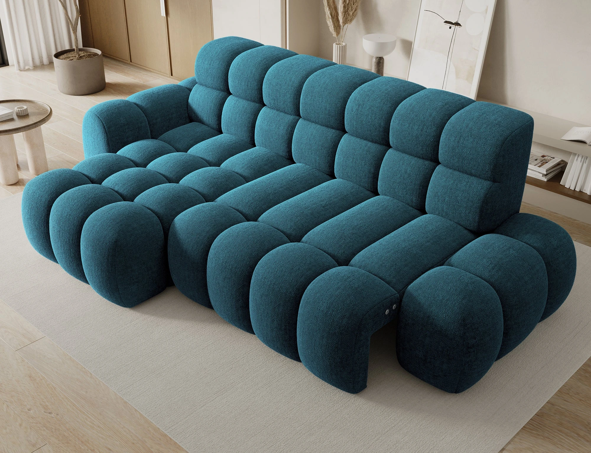 Narożnik do salonu CEEDRO to nowoczesny mebel stworzony z myślą o codziennym komforcie i funkcjonalności. Dzięki głęboko pikowanym siedziskom i oparciom miękko dopasowuje się do ciała, zapewniając wygodę podczas odpoczynku, oglądania filmów czy spotkań z rodziną. Elektryczny wysuw siedziska pozwala jednym przyciskiem zmienić ustawienie narożnika w komfortową strefę relaksu lub pełnowymiarowe miejsce do spania o długości 208 cm, bez wysiłku i dodatkowych elementów.