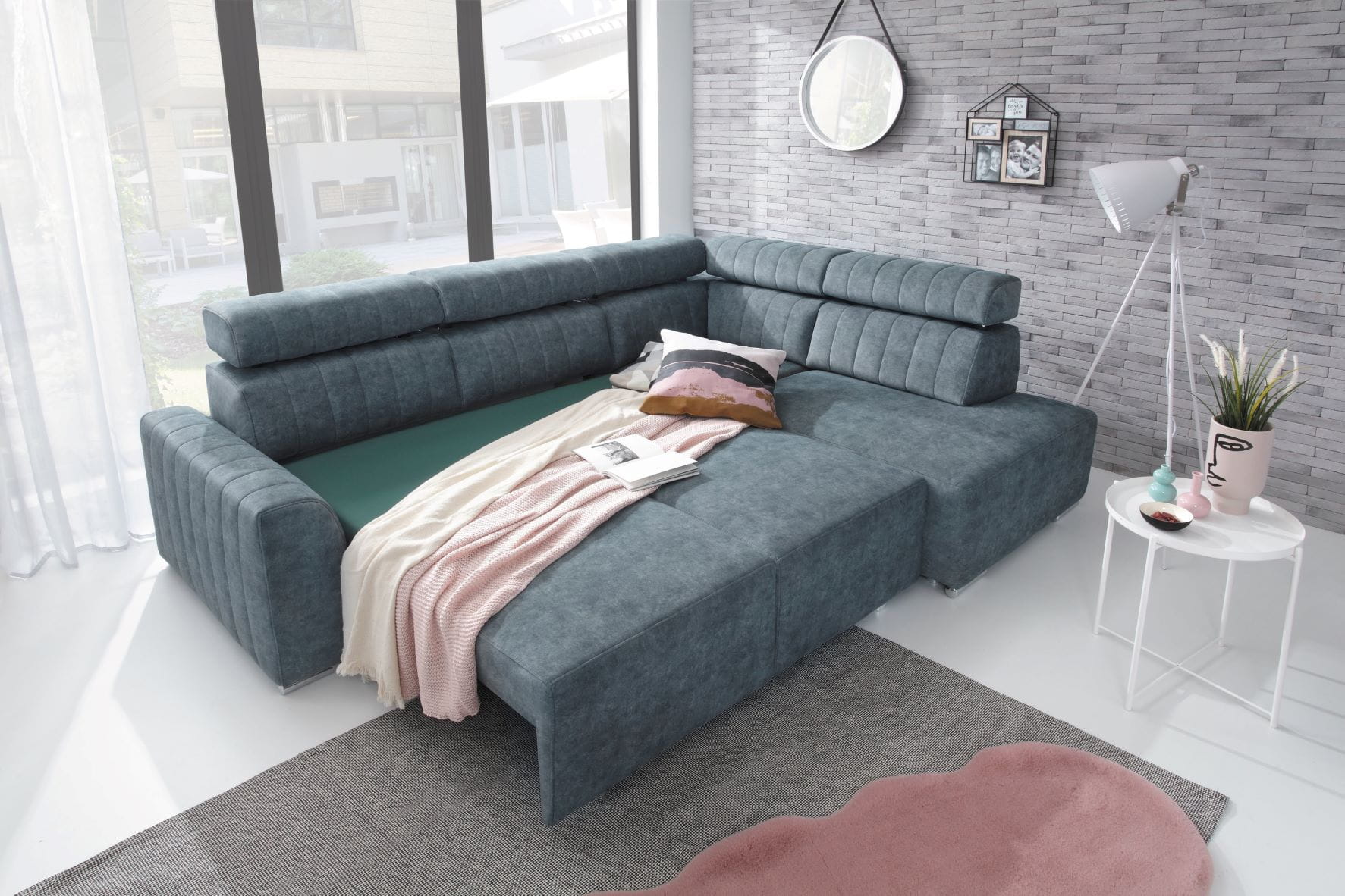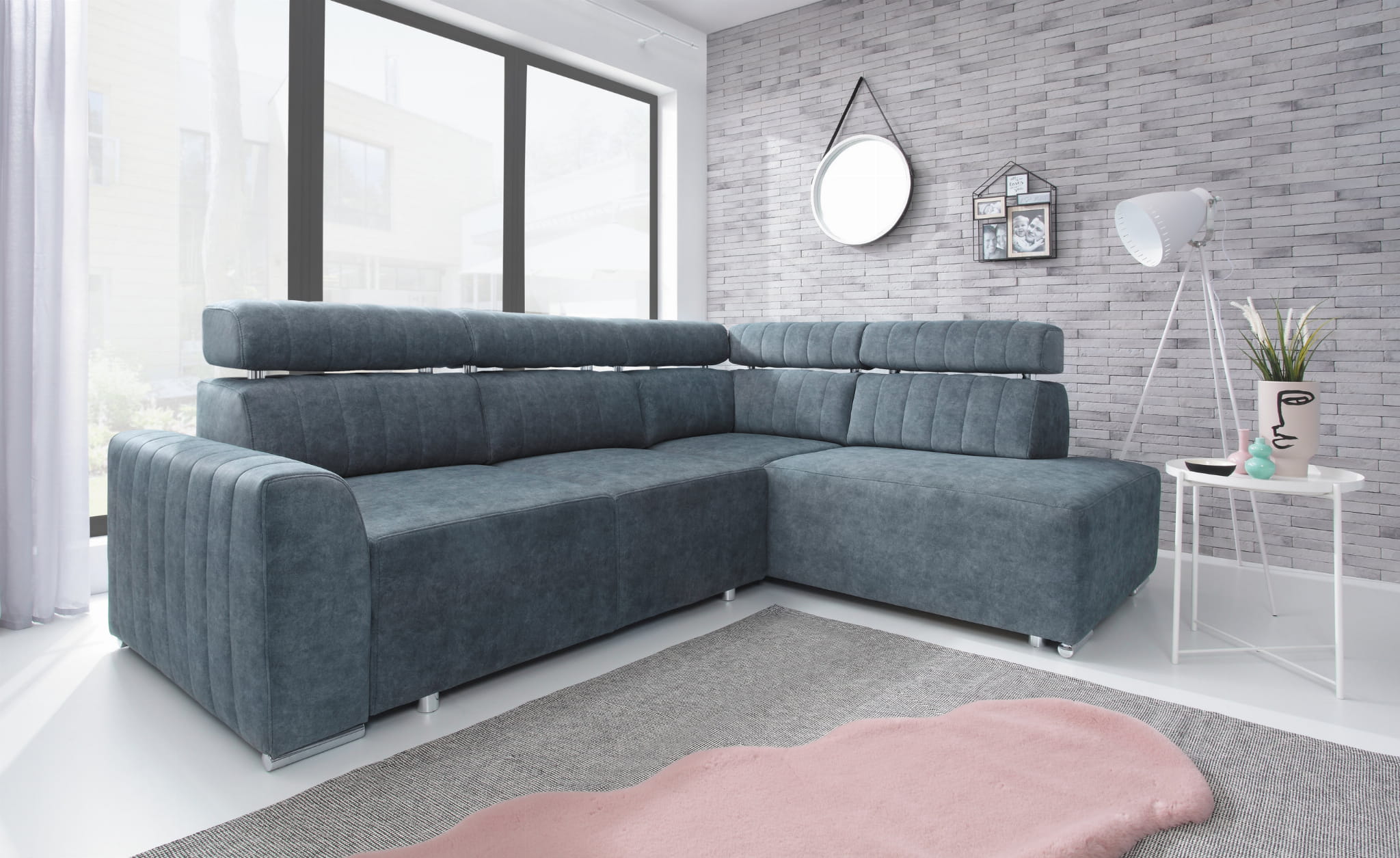 Nowoczesny narożnik do salonu oraz pokoju, został wyposażony w funkcję spania o powierzchni 144 x 198 cm.