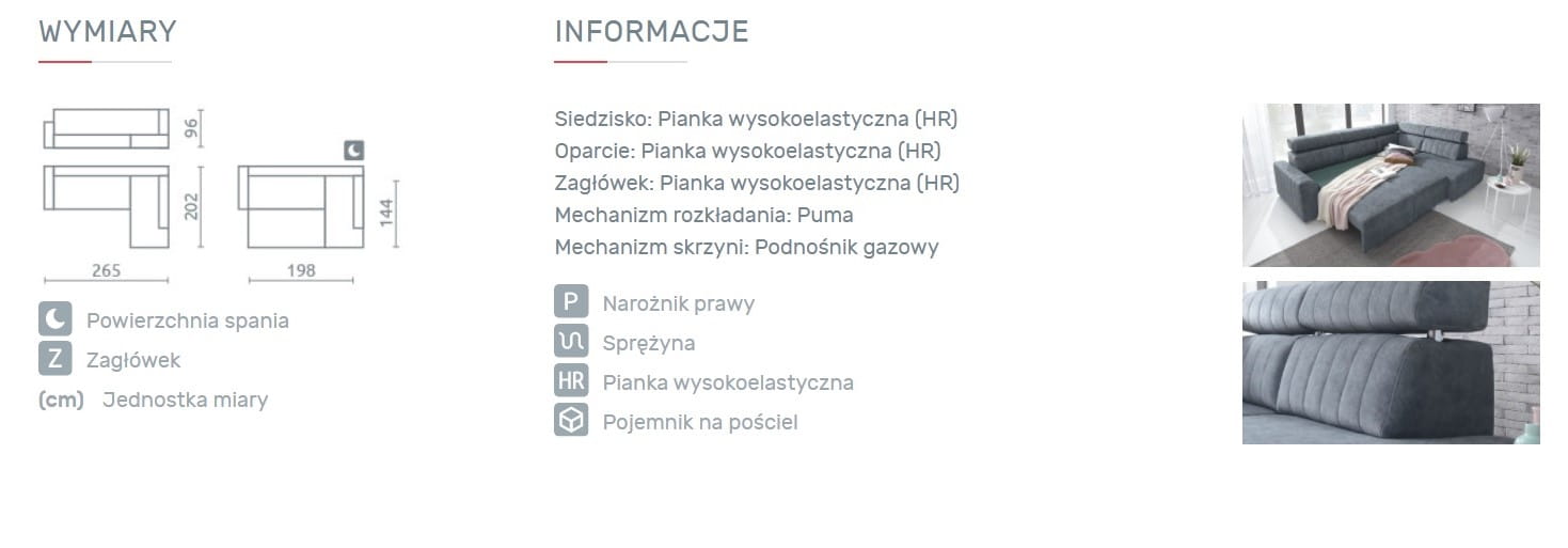 Jest to mebel wysokiej jakości w którym zastosowano piankę wysokoelastyczną HR\