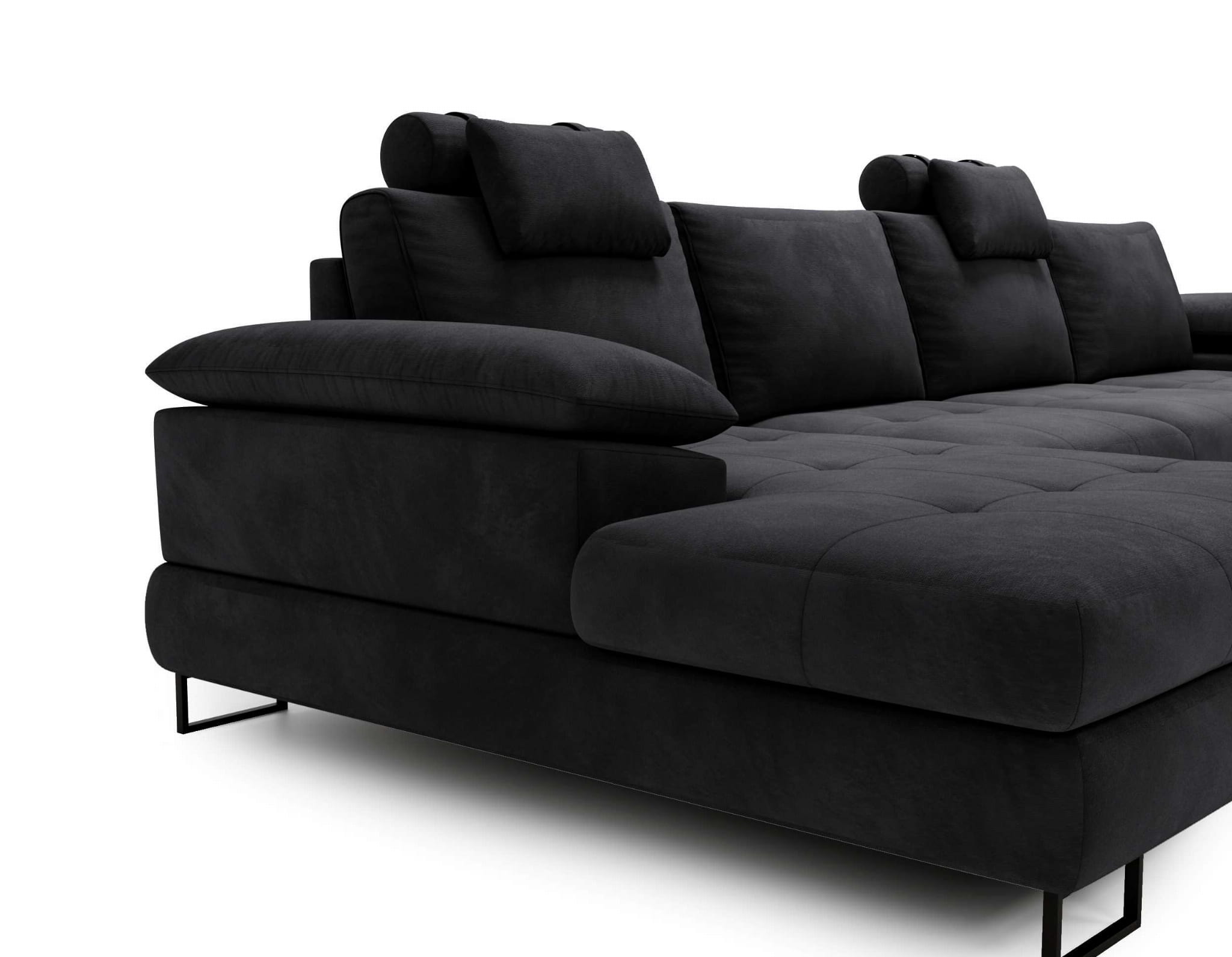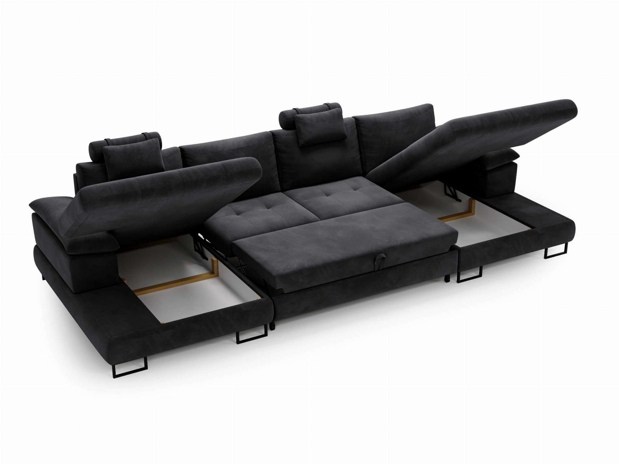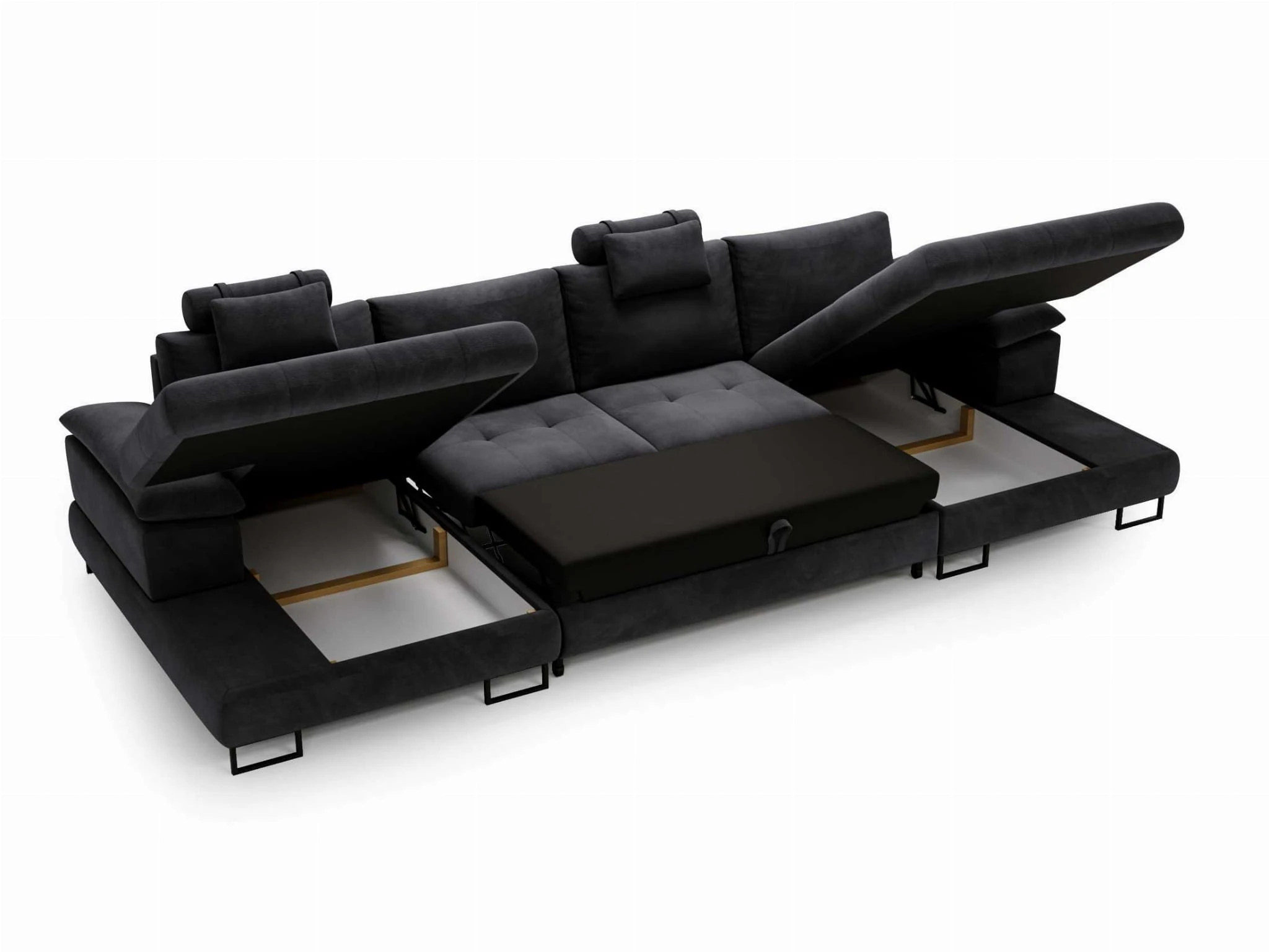 Narożnik CUBA Grafitowy Nowoczesny Uniwersalny Funkcja Spania Rozkładany Pojemniki Do Salonu