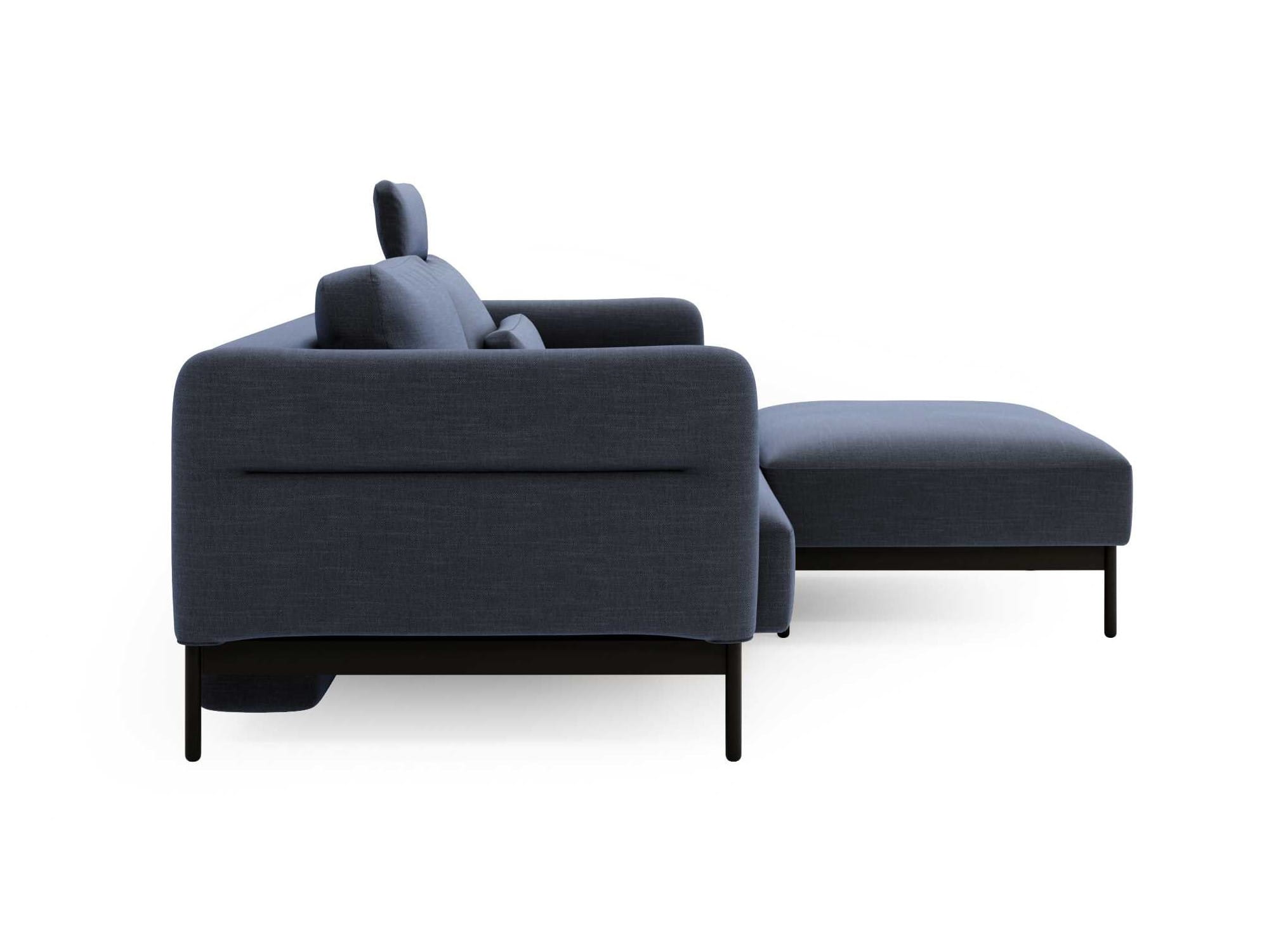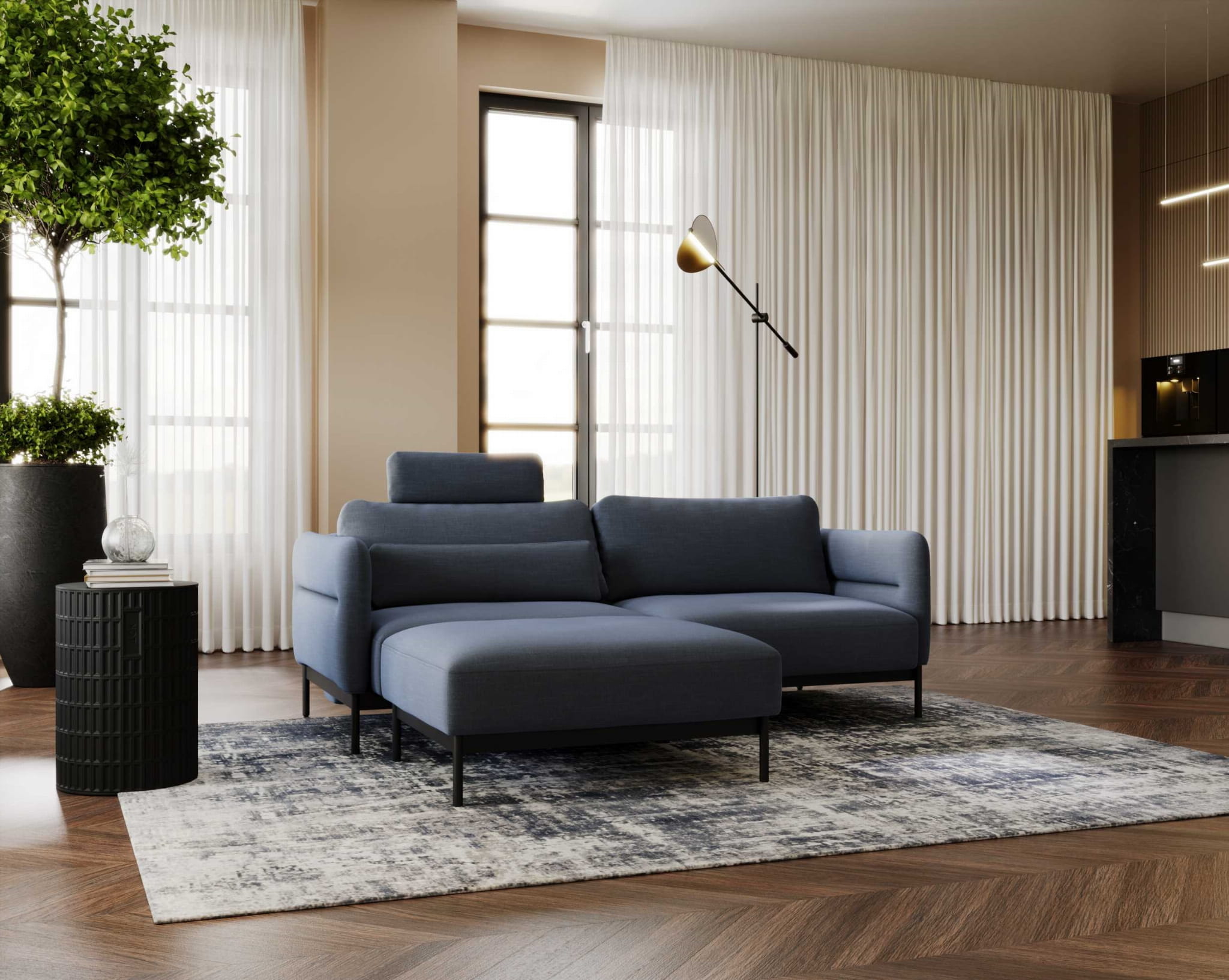 Starannie tapicerowany tył umożliwia umieszczenie mebla w centralnym punkcie pomieszczenia. Stałe podłokietniki dodają elegancji i funkcjonalności, a wyjątkowy design wyróżnia narożnik w każdym wnętrzu. Solidna konstrukcja z metalu gwarantuje długotrwałe użytkowanie. Duże poduszki zapewniają wygodne podparcie, a dodatkowa poduszka dekoracyjna uzupełnia jego wygląd.