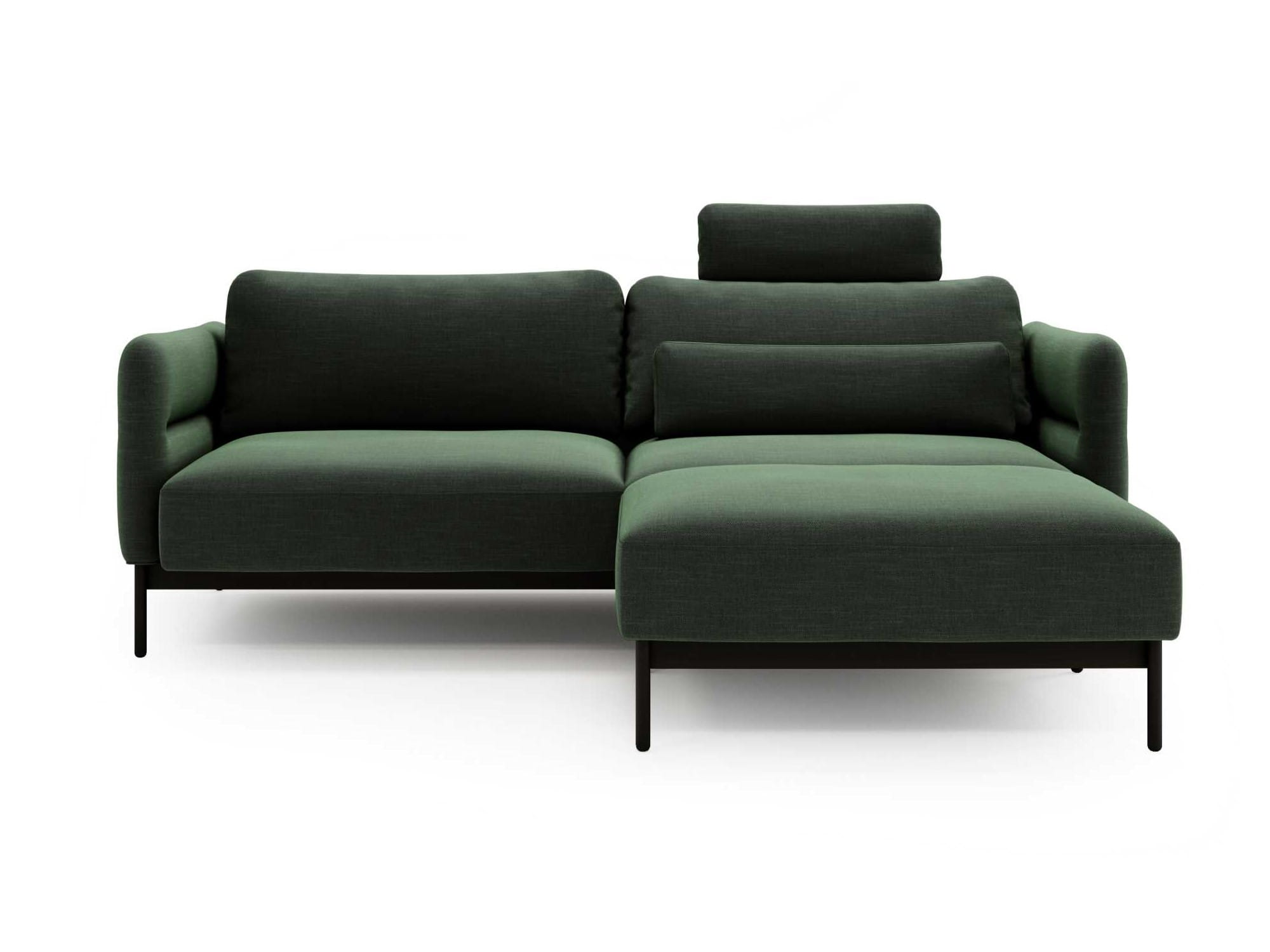 Starannie tapicerowany tył umożliwia umieszczenie mebla w centralnym punkcie pomieszczenia. Stałe podłokietniki dodają elegancji i funkcjonalności, a wyjątkowy design wyróżnia narożnik w każdym wnętrzu. Solidna konstrukcja z metalu gwarantuje długotrwałe użytkowanie. Duże poduszki zapewniają wygodne podparcie, a dodatkowa poduszka dekoracyjna uzupełnia jego wygląd.