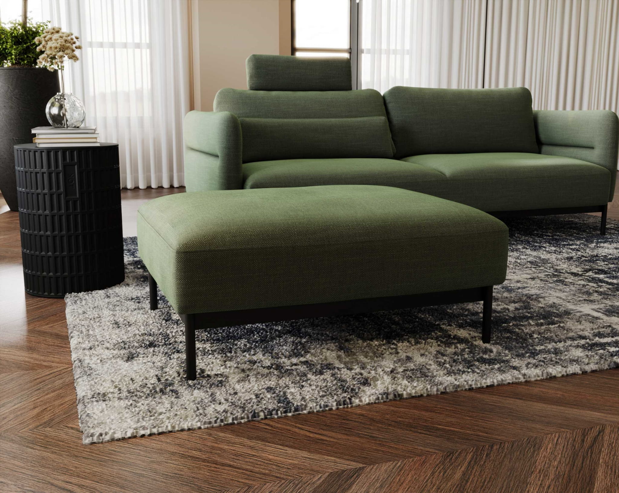 Jest to mebel, który oferuje zarówno funkcję spania, jak i atrakcyjny design, idealny do różnych aranżacji wnętrz. DUERO składa się z sofy i pufy, co pozwala na elastyczną aranżację. Elementy można łączyć w narożnik lub używać oddzielnie, dostosowując do potrzeb konkretnego pomieszczenia.