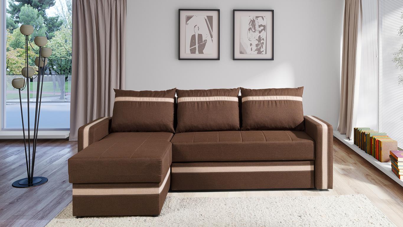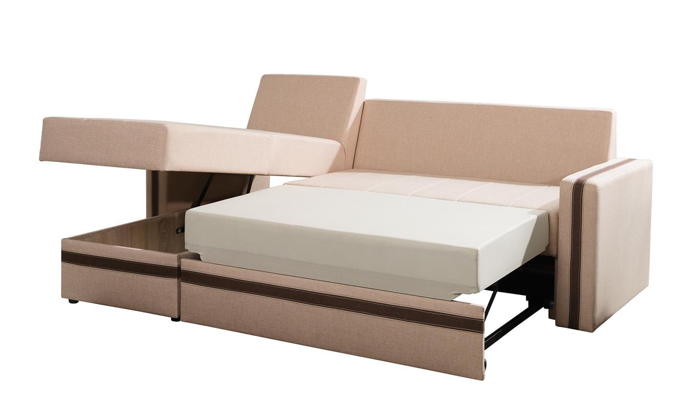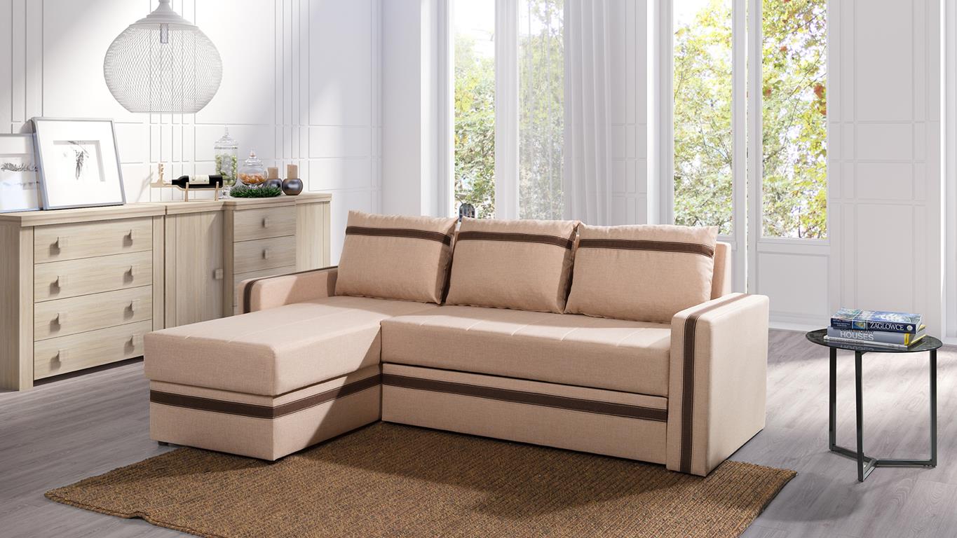 Narożnik EUFORIA Do Salonu Pokoju Funkcja Spania Pojemnik Beżowy