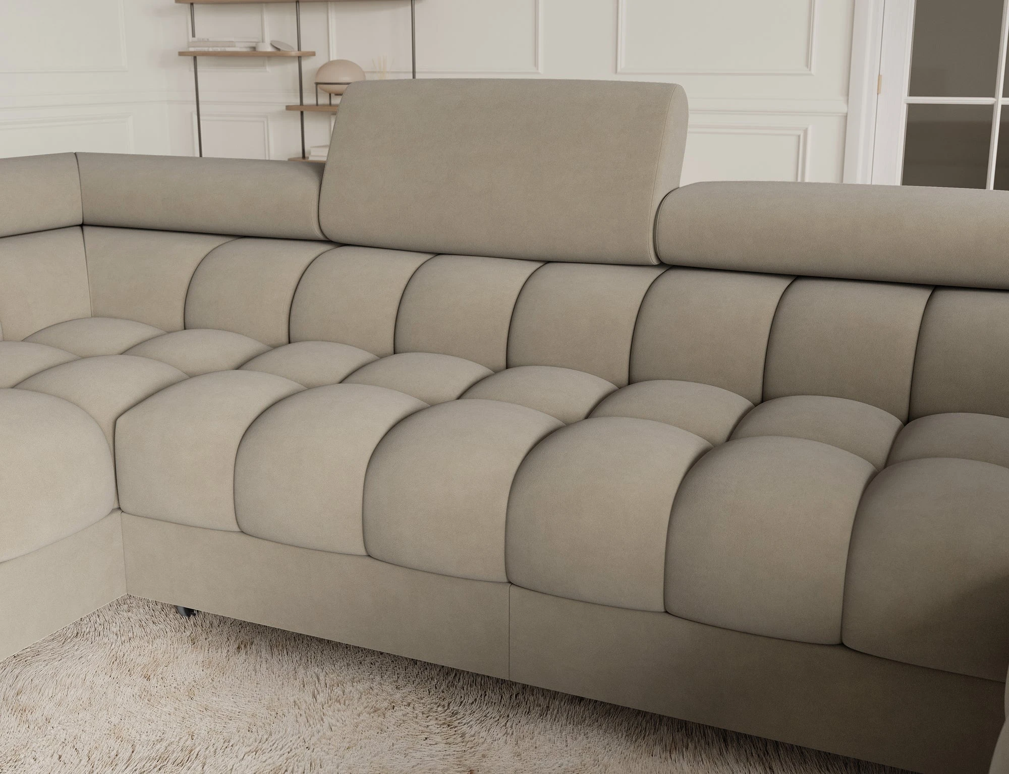 Narożnik FECTORY Tkanina Aura 18 Beżowy Pojemnik Funkcja Spania Regulowane Zagłówki Nowoczesny