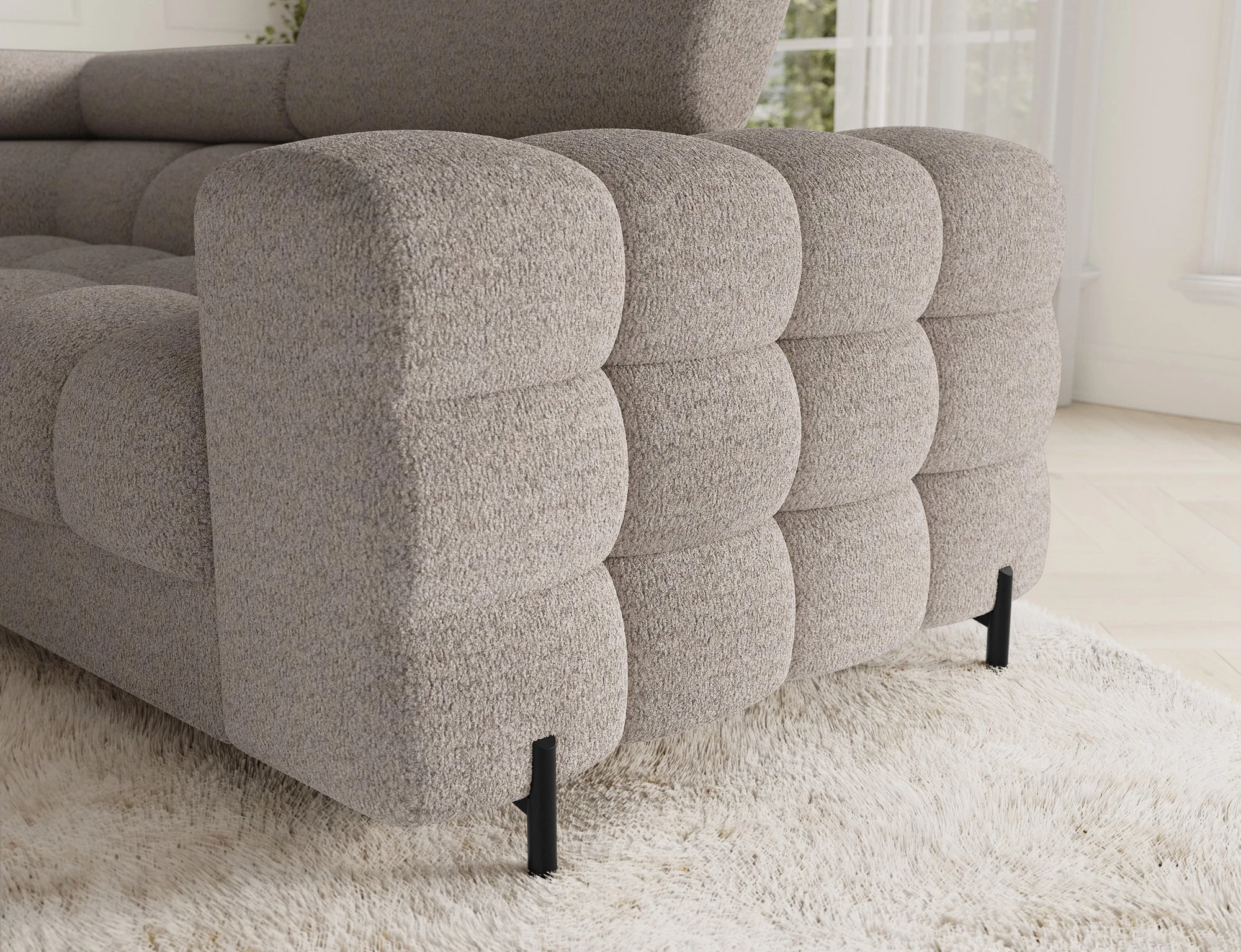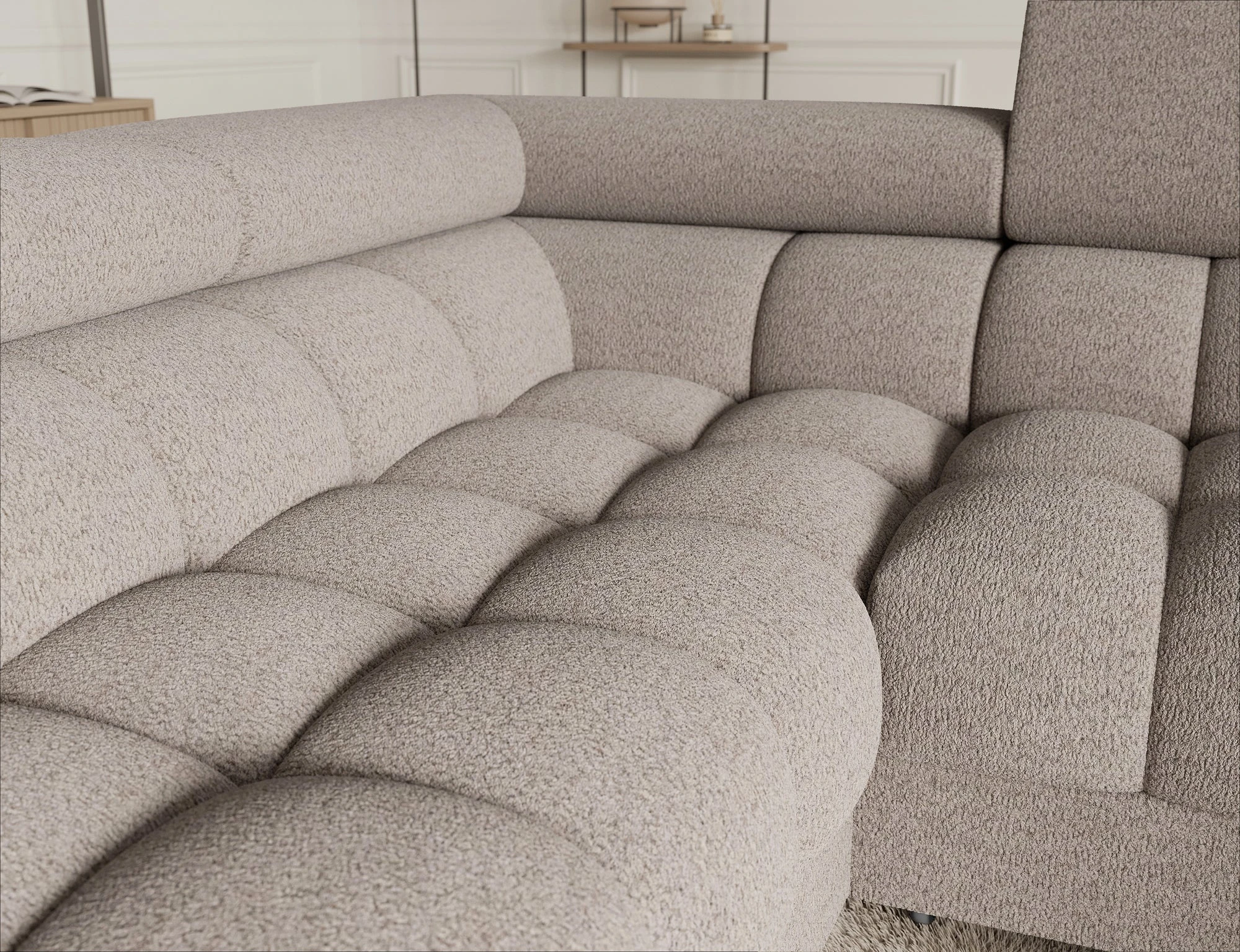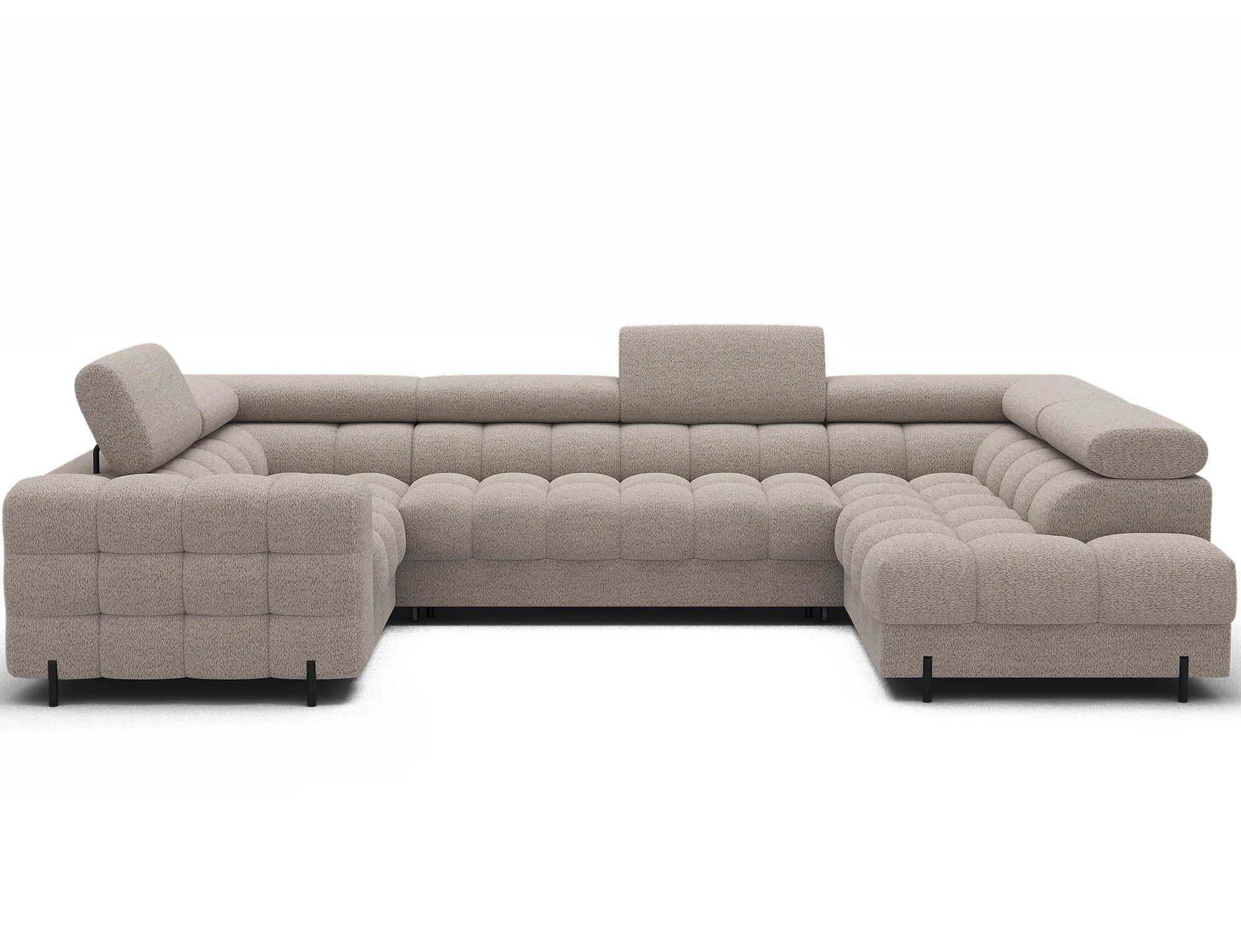 Narożnik z funkcją spania FECTORY to przestronny i komfortowy mebel stworzony z myślą o wspólnym, rodzinnym wypoczynku. Duża bryła w kształcie litery U zapewnia mnóstwo miejsca do siedzenia, relaksu i zabawy, a możliwość wyboru wersji lewej lub prawej pozwala idealnie dopasować narożnik do układu salonu. Miękkie siedziska, dekoracyjne pikowania oraz przytulna forma sprawiają, że FECTORY szybko staje się centralnym punktem wnętrza.