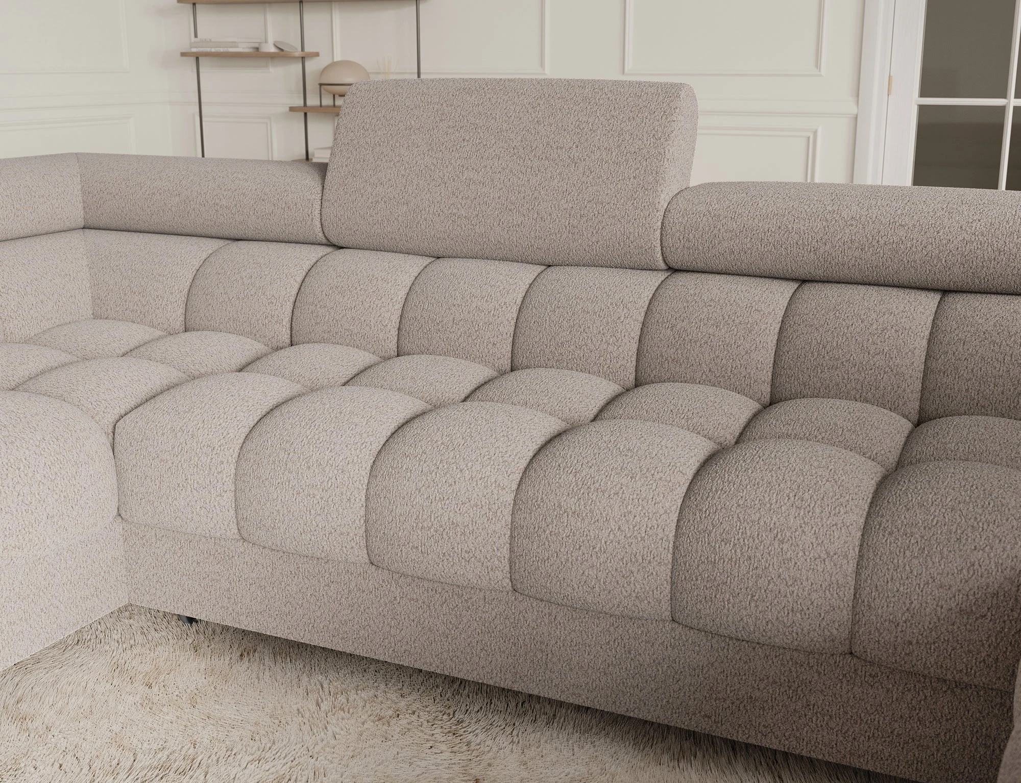 Narożnik FECTORY Tkanina Royal 18 Beżowy Pojemnik Funkcja Spania Regulowane Zagłówki Nowoczesny