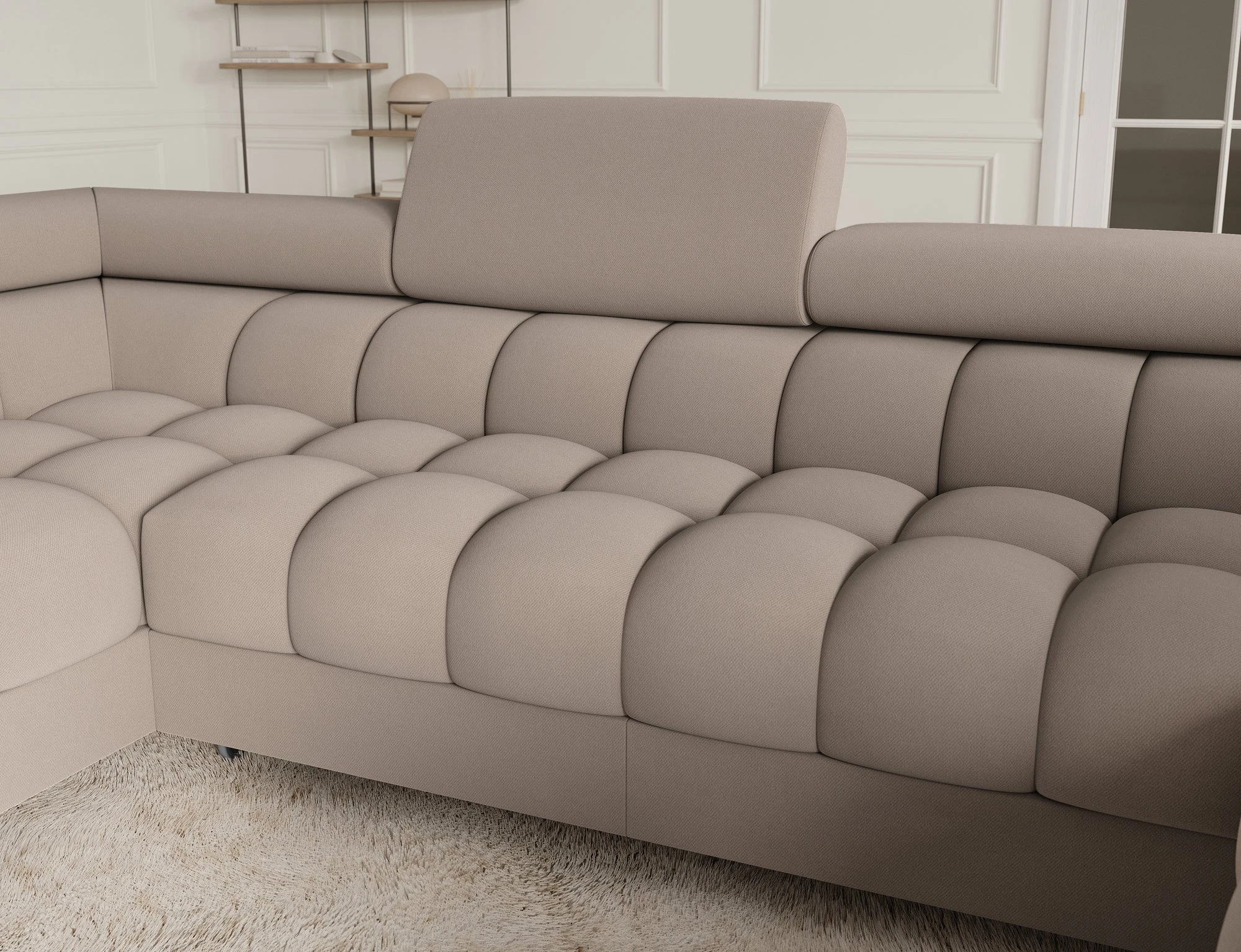 Narożnik FECTORY Tkanina Sola 18 Beżowy Pojemnik Funkcja Spania Regulowane Zagłówki Nowoczesny