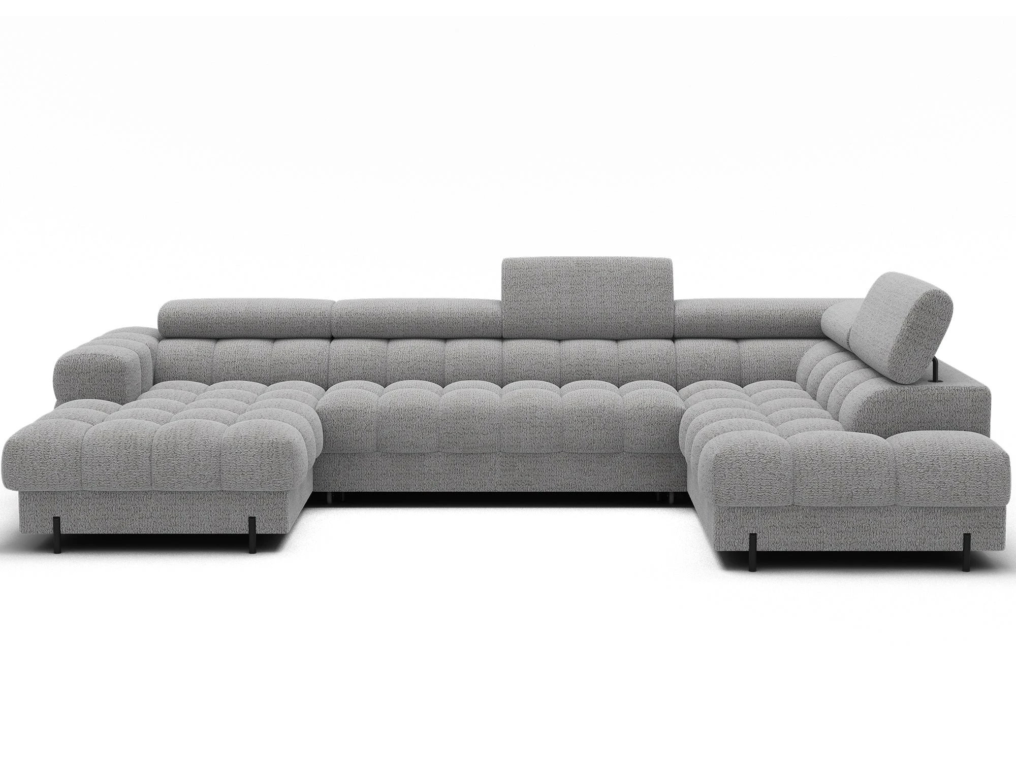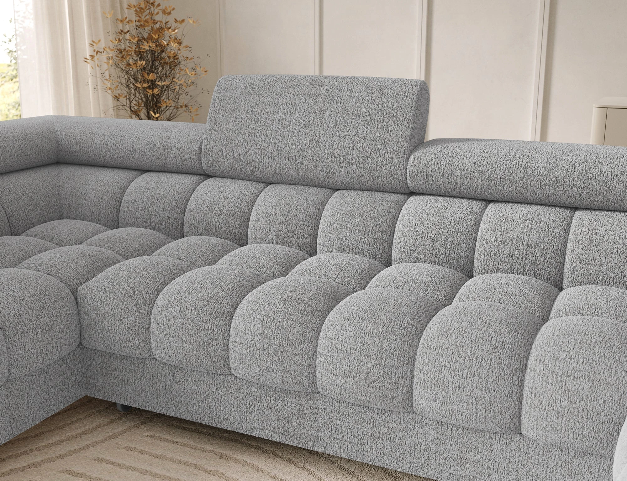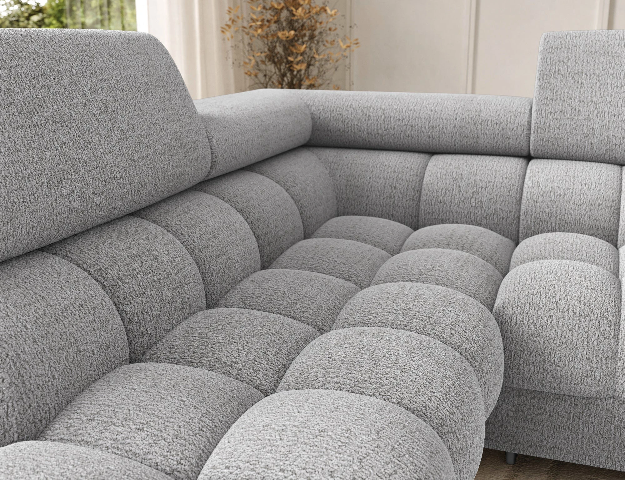 Narożnik FERARIA Tkanina Royal 03 Szary Funkcja Spania Pojemnik Regulowane Zagłówki U-Kształtny