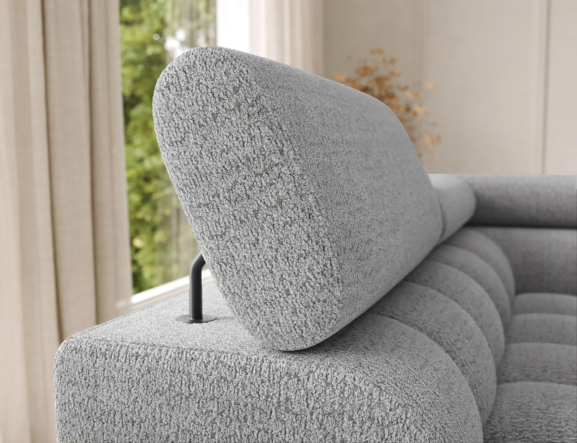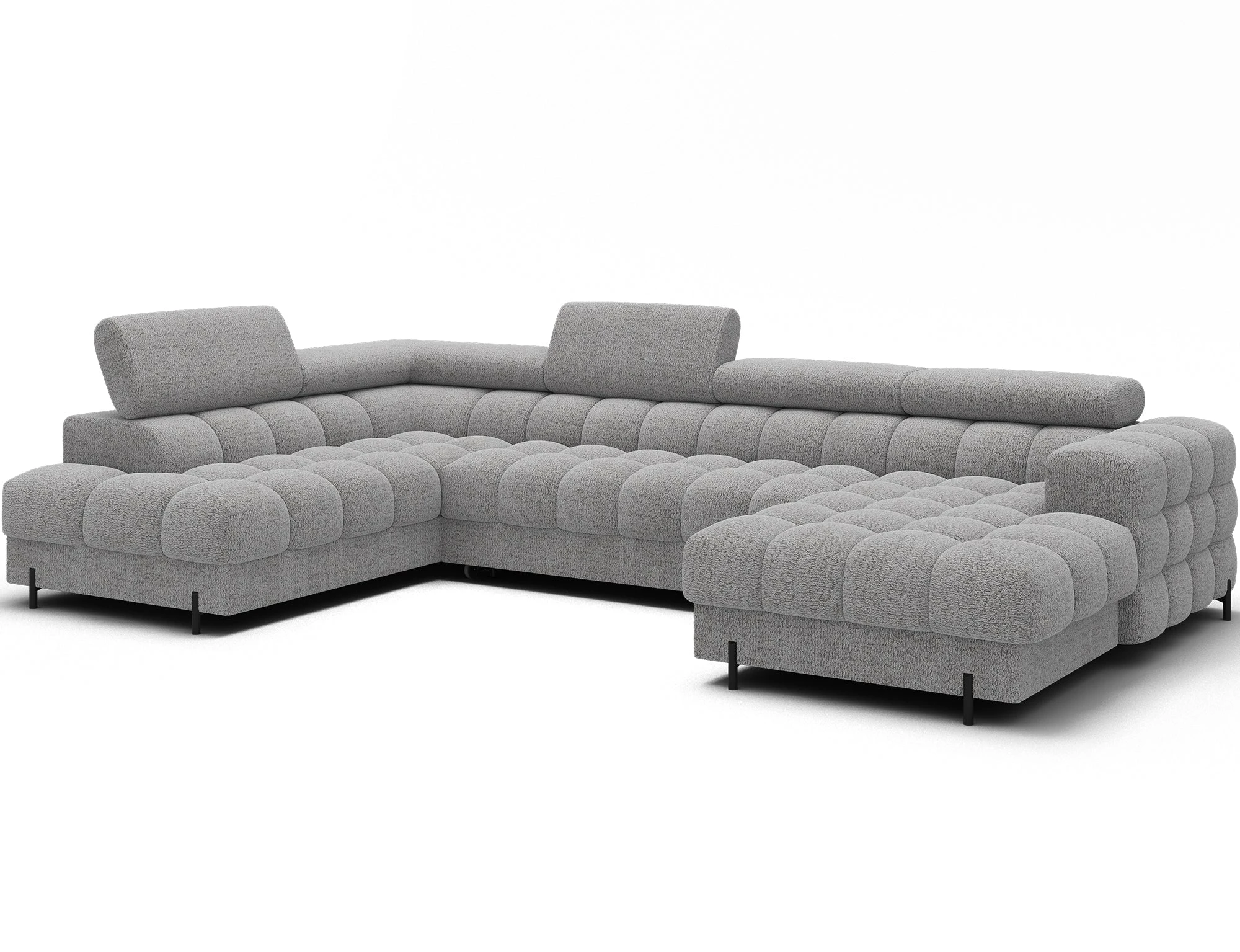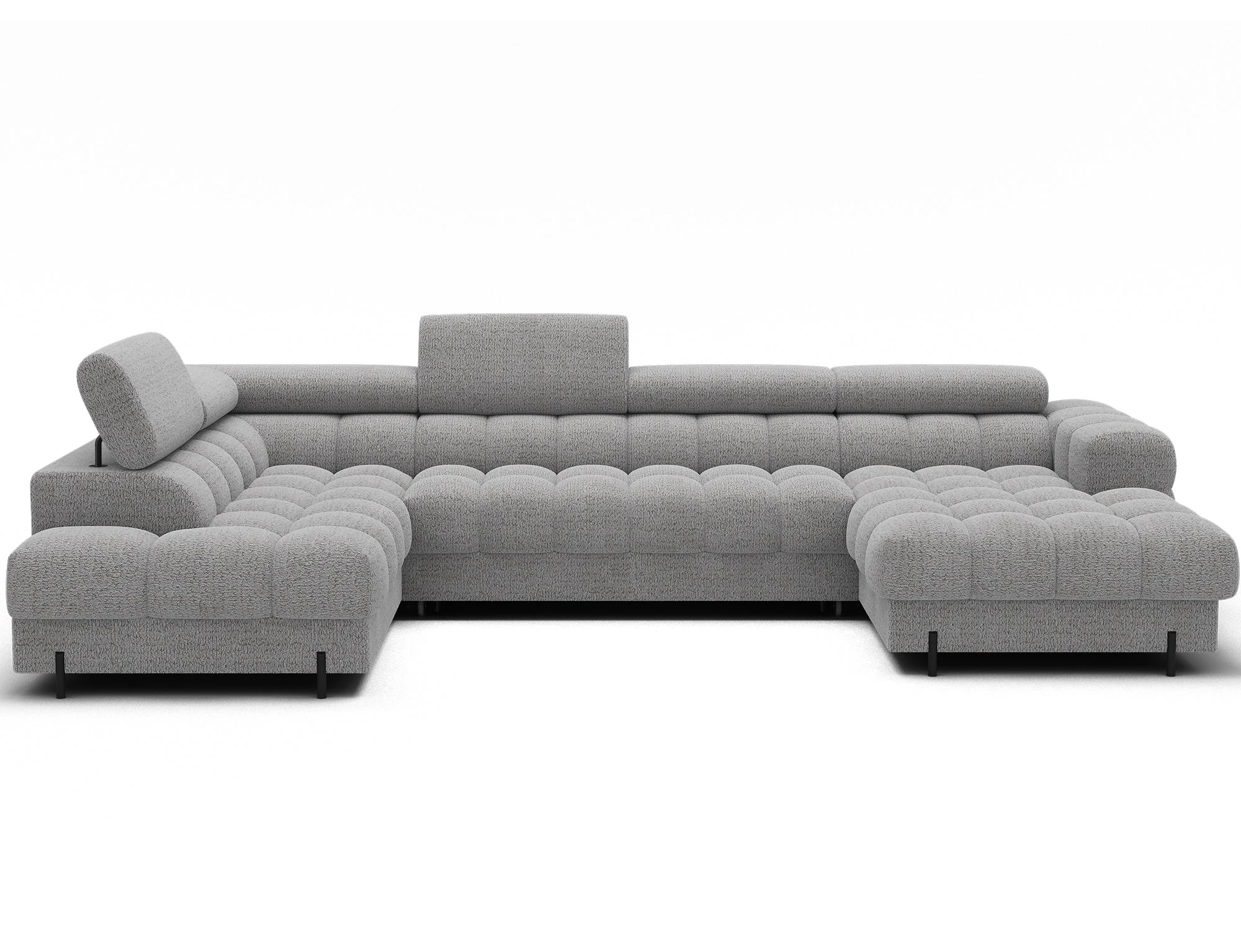 Narożnik FERARIA Tkanina Royal 03 Szary Funkcja Spania Pojemnik Regulowane Zagłówki U-Kształtny