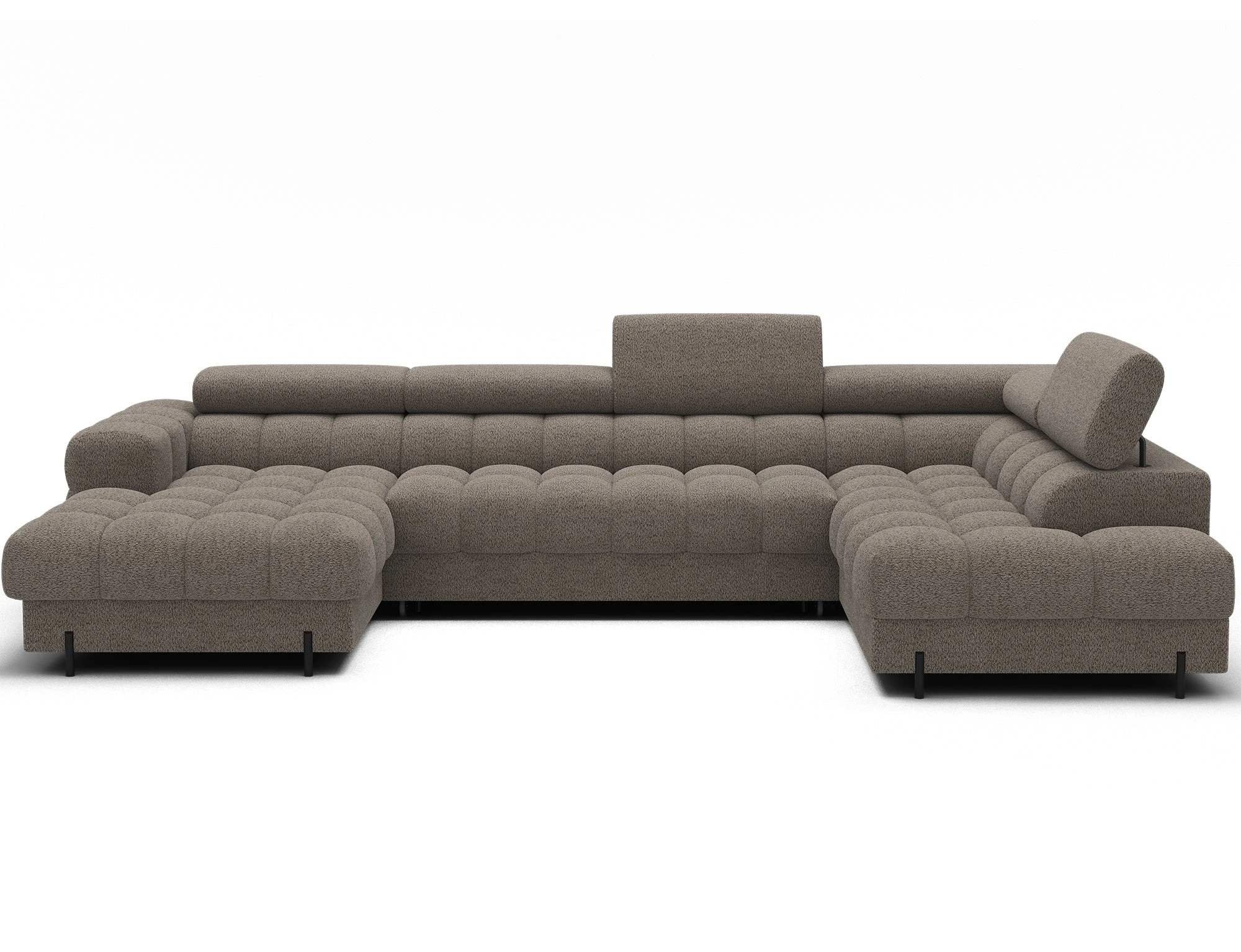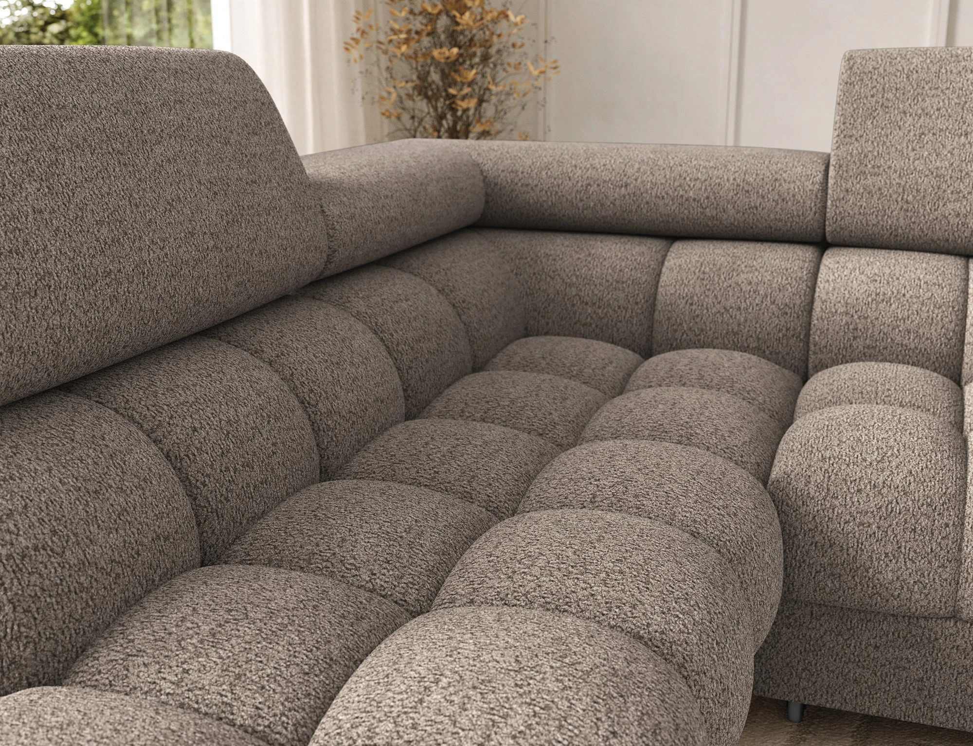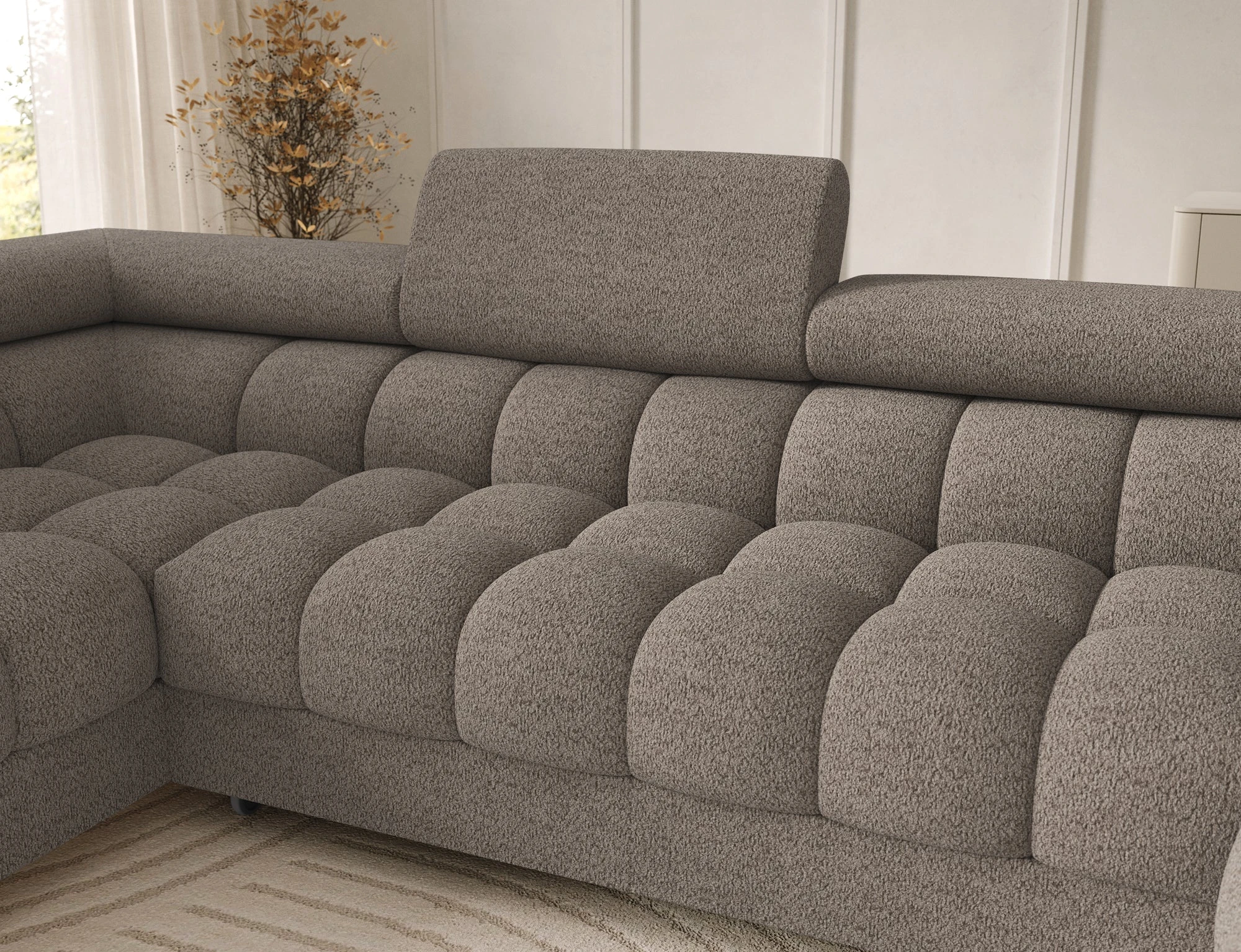 Narożnik FERARIA Tkanina Royal 20 Brązowy Funkcja Spania Pojemnik Regulowane Zagłówki U-Kształtny