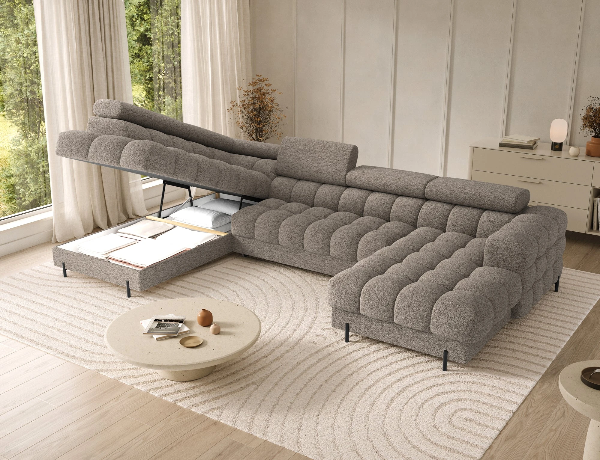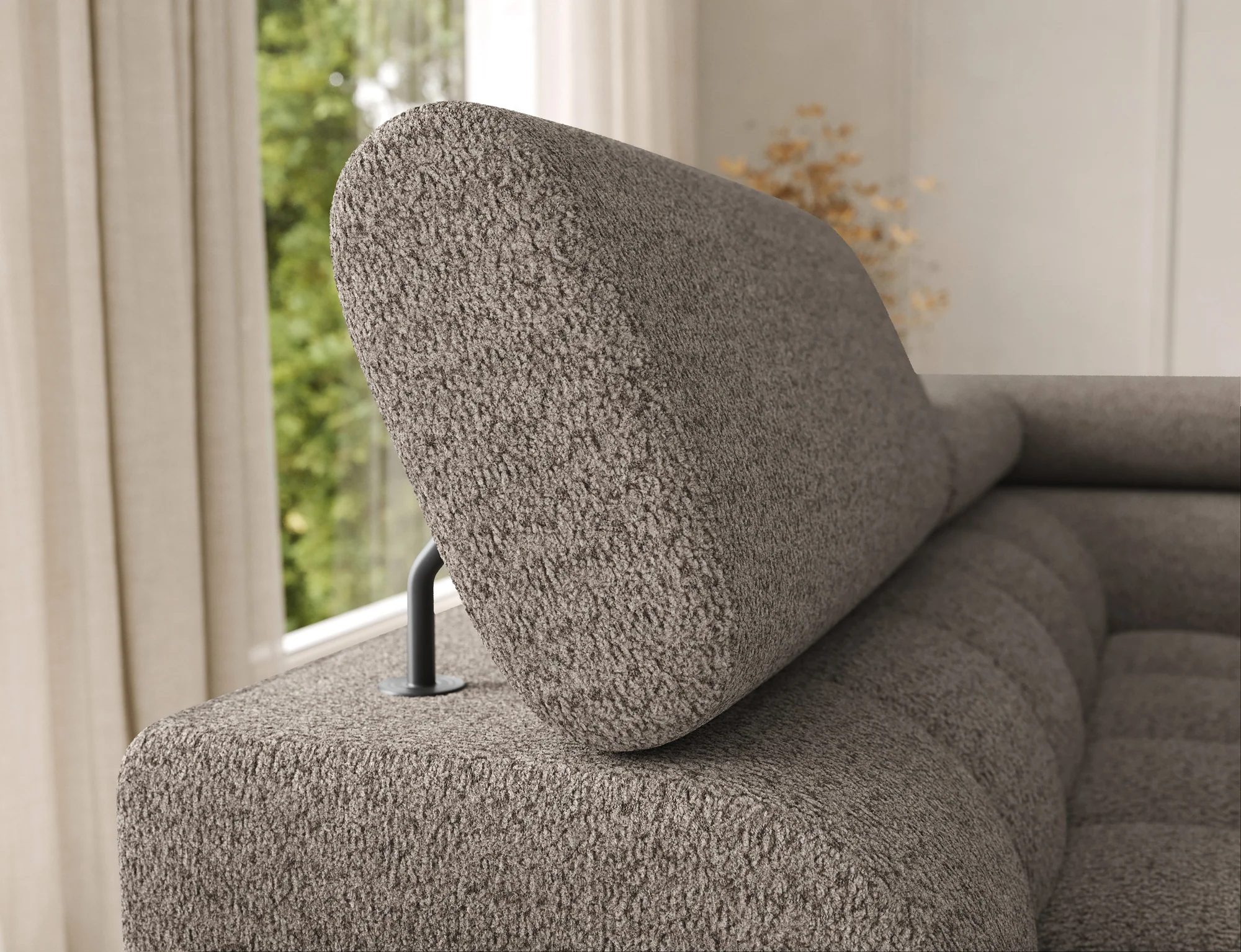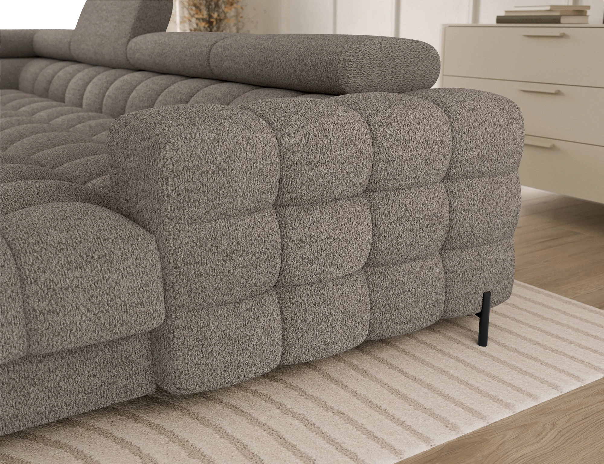 Narożnik FERARIA Tkanina Royal 20 Brązowy Funkcja Spania Pojemnik Regulowane Zagłówki U-Kształtny
