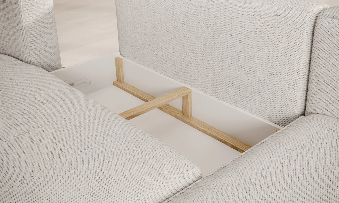 Dodatkowym atutem tego modelu jest ukryty pojemnik, który pomieści koc, czy komplet pościeli.