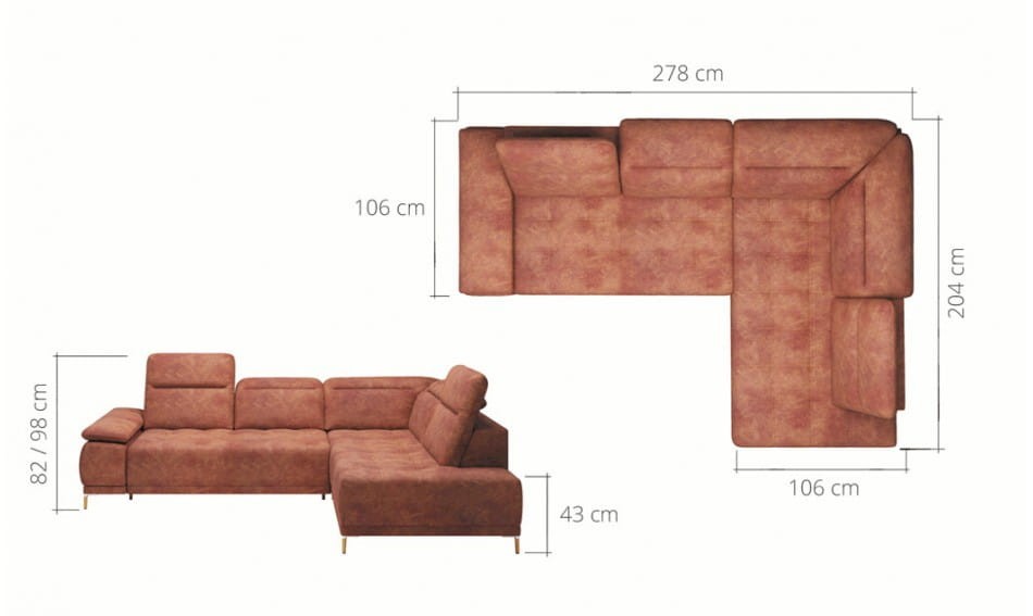 Narożnik FOCUS L Skóra Naturalna Elektrycznie Wysuwane Siedzisko Funkcja Relax