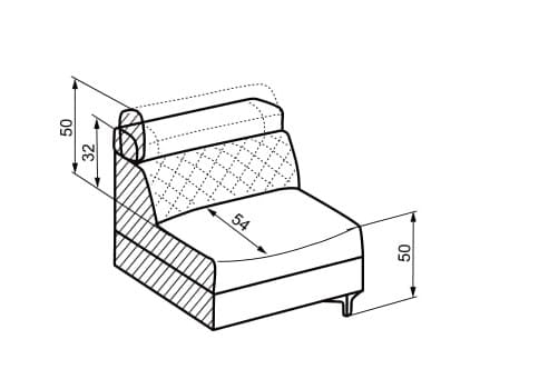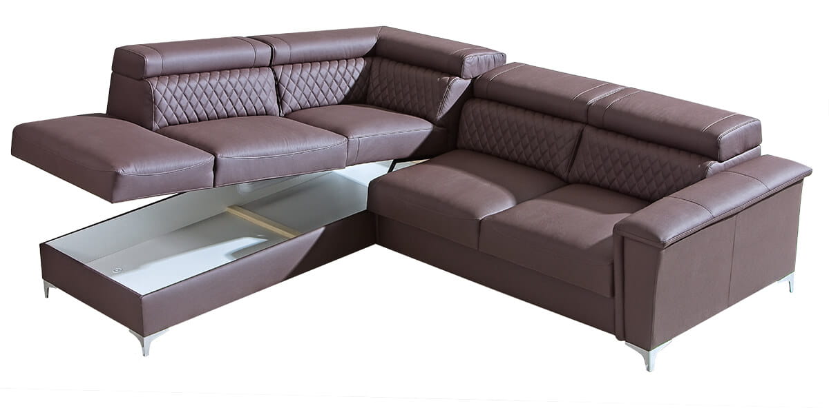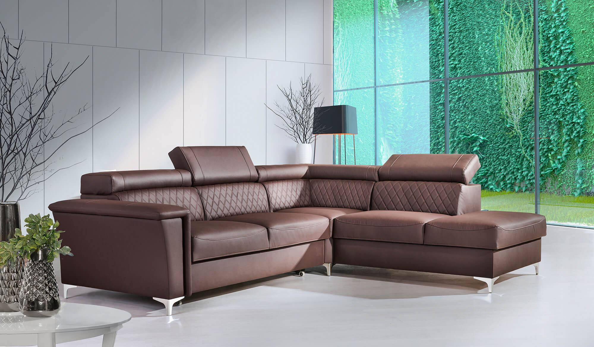 Pierwszy narożnik składa się z elementów: kanapy z funkcją spania, róg i otomana mała