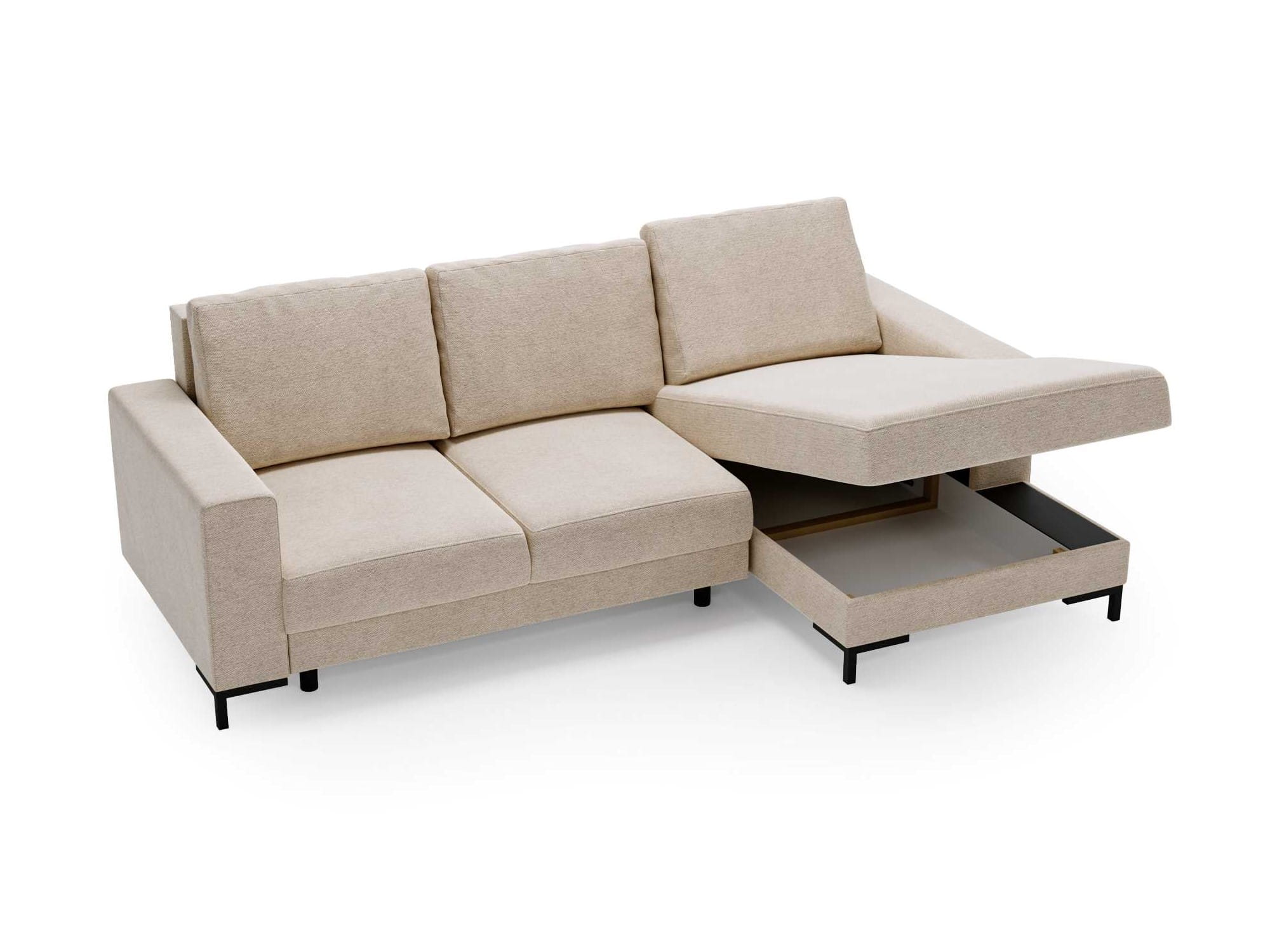 Narożnik HARVEY Beżowy Funkcja Spania Pojemnik Nowoczesny Do Salonu