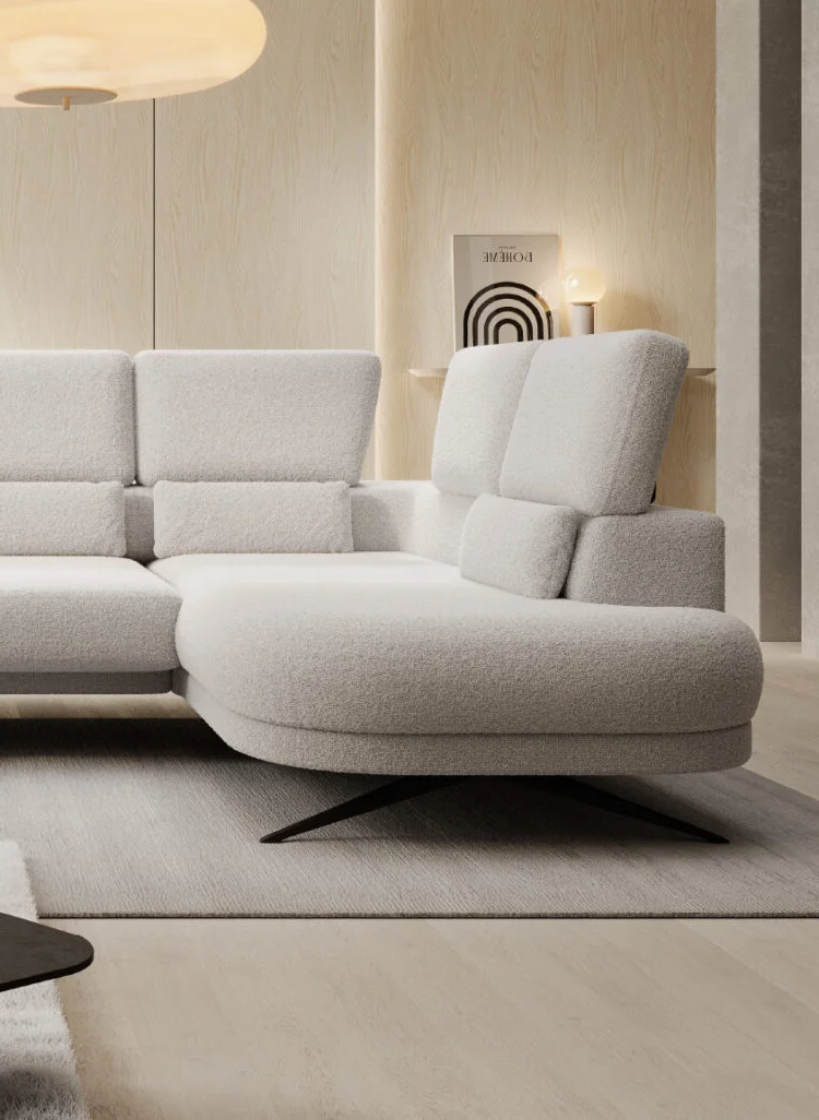 Narożnik ILUSIO XL posiada funkcję elektrycznego wysuwu siedziska aż do 17 cm! To rozwiązanie idealne dla tych, którzy lubią mieć możliwość wyboru - od kompaktowej pozycji do pełnego rozprostowania.