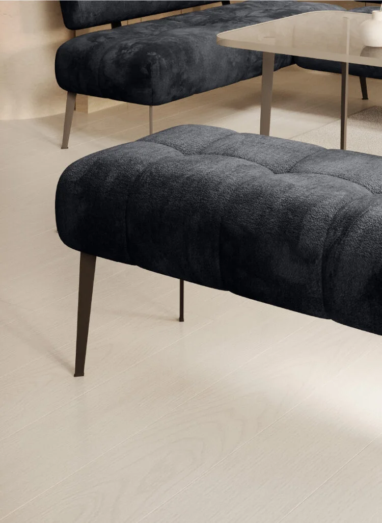 Delikatne przeszycia na siedzisku oraz wysokie nogi dodają lekkości i sprawiają, że mebel zyskuje wielu zwolenników.
