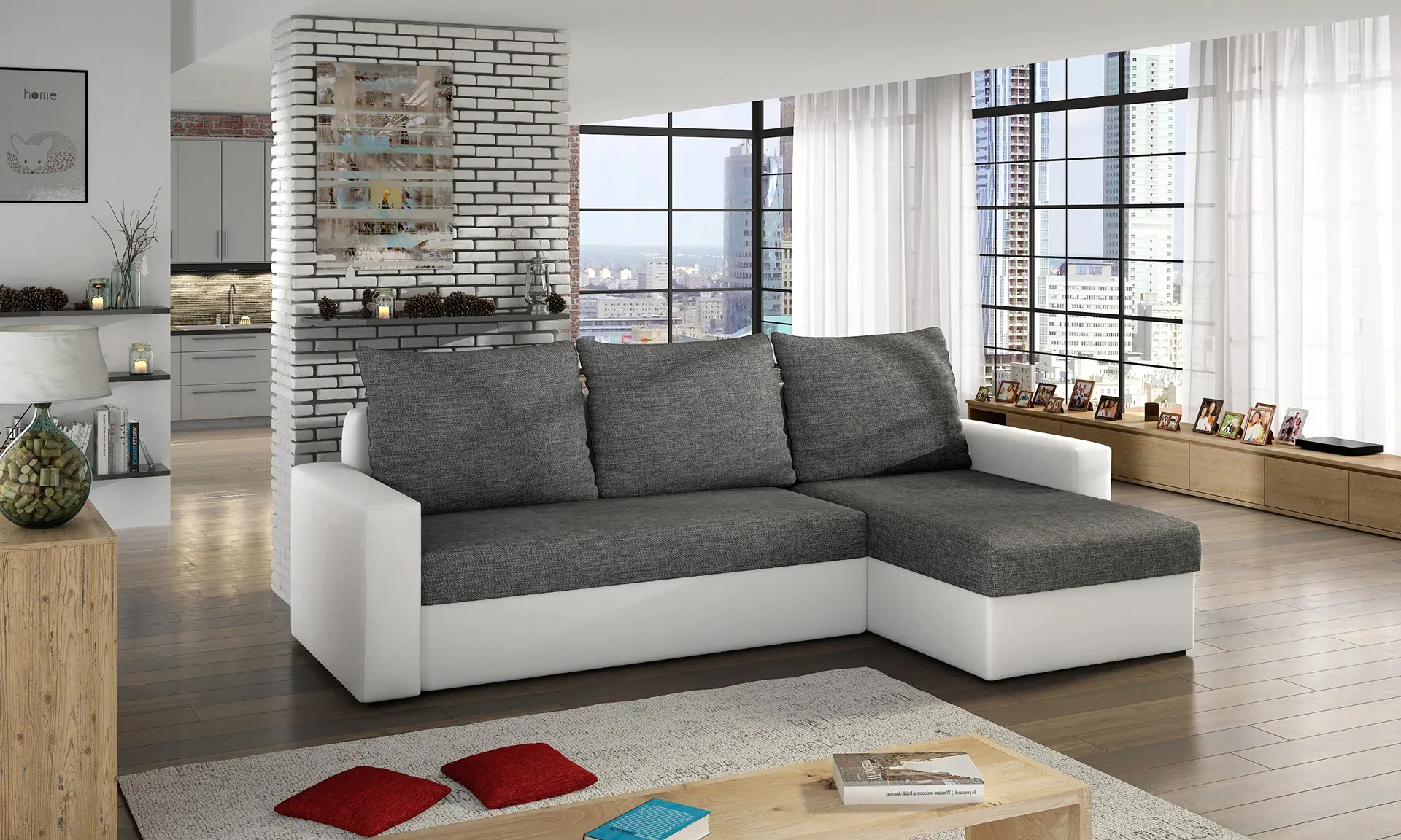Narożnik LIVIO Tkanina Sawana 05 + Soft 17 Funkcja Spania Pojemnik Uniwersalny Do Salonu