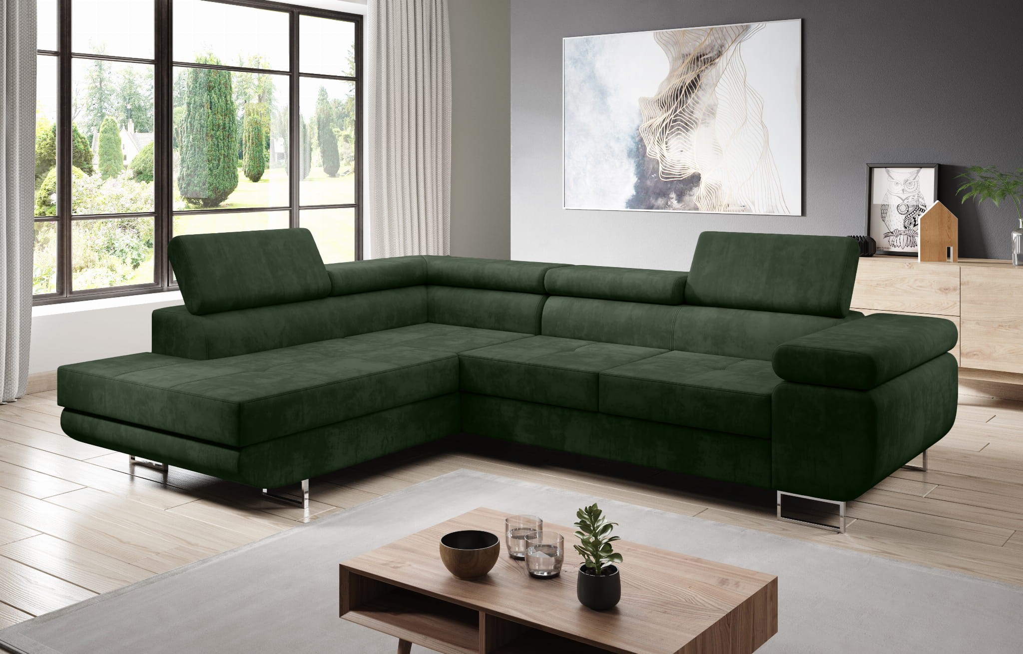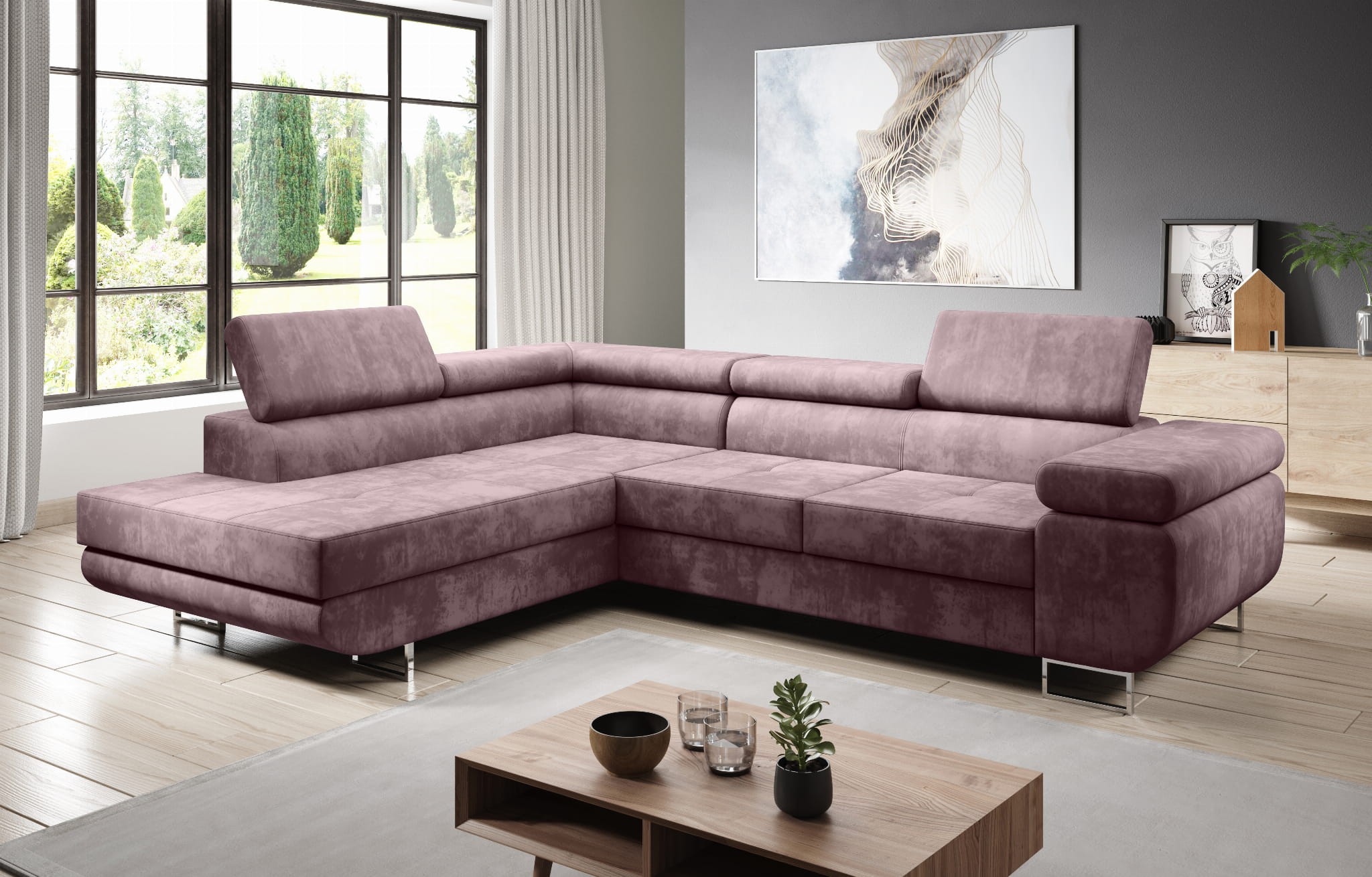 - Narożnik rozkładany za pomocą mechanizmu wózkowego