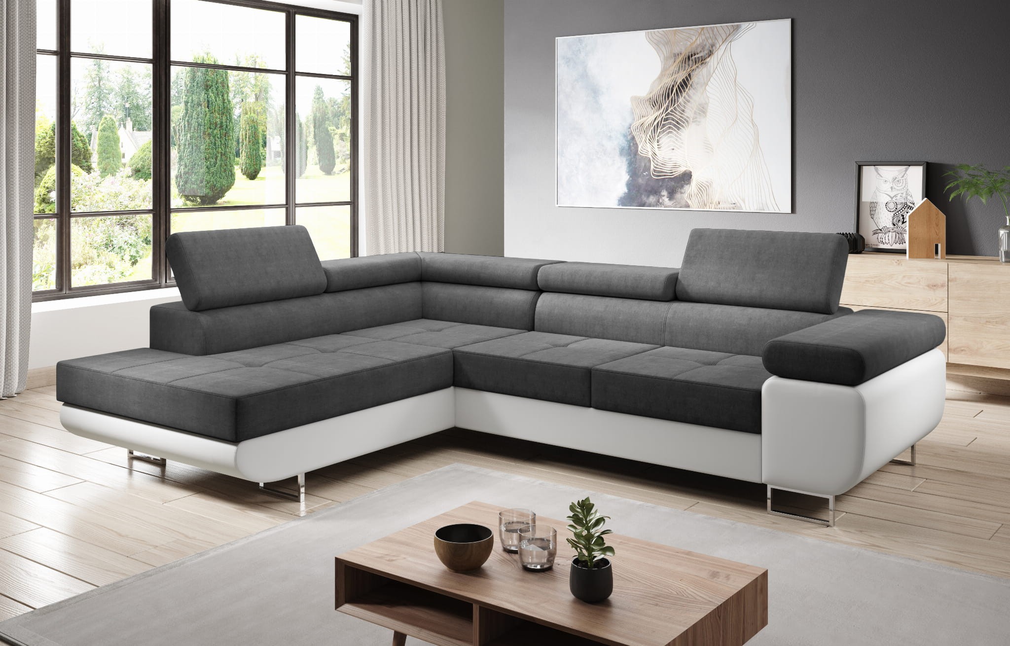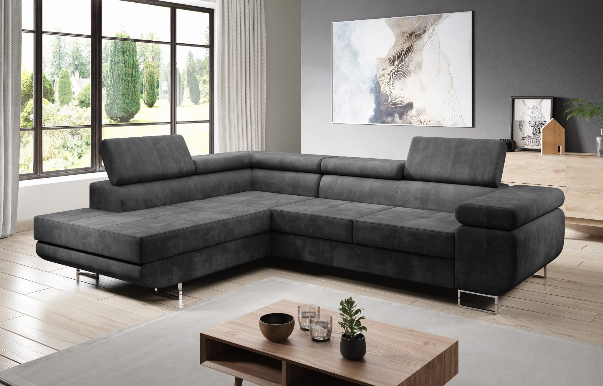 Narożnik LOTUS L z Funkcją Spania Nowoczesny Do Salonu Szary