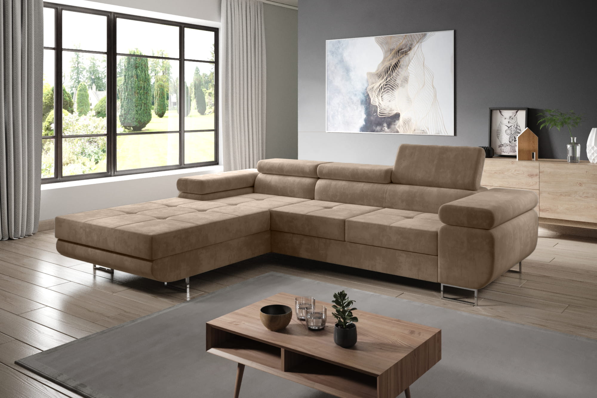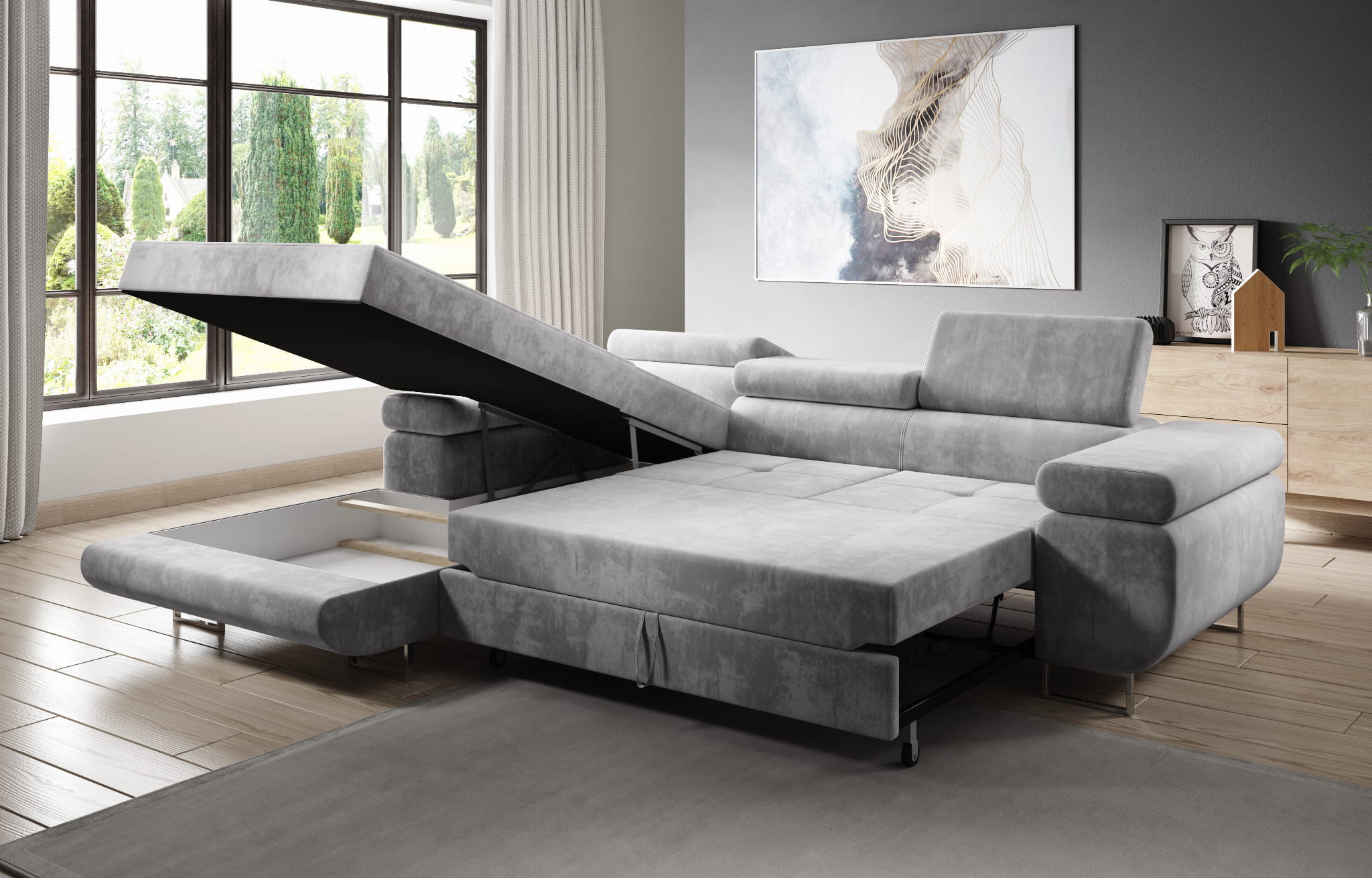 - Narożnik rozkładany za pomocą mechanizmu wózkowego