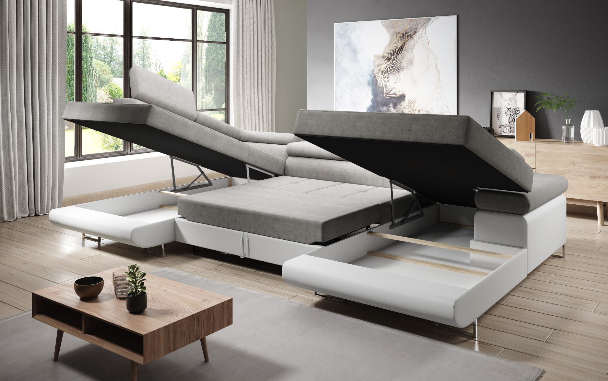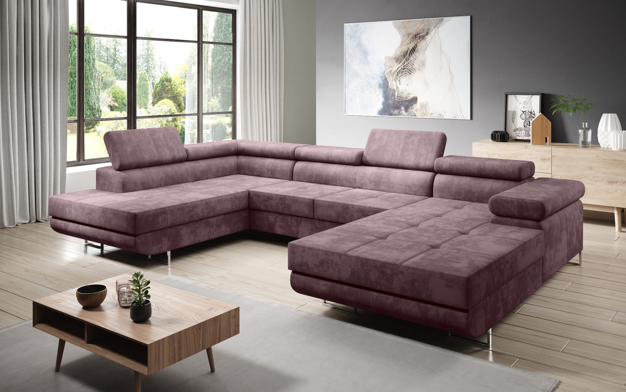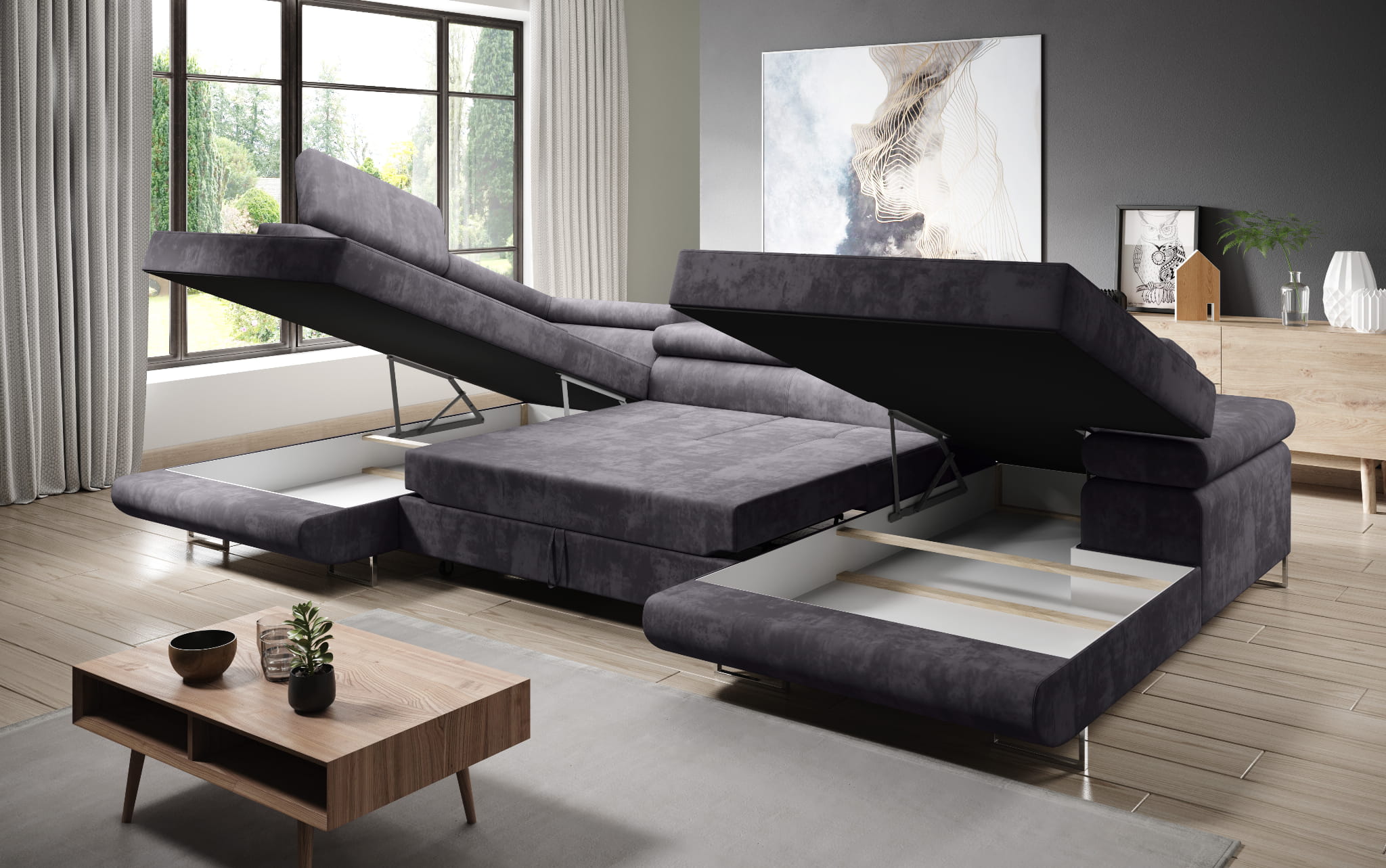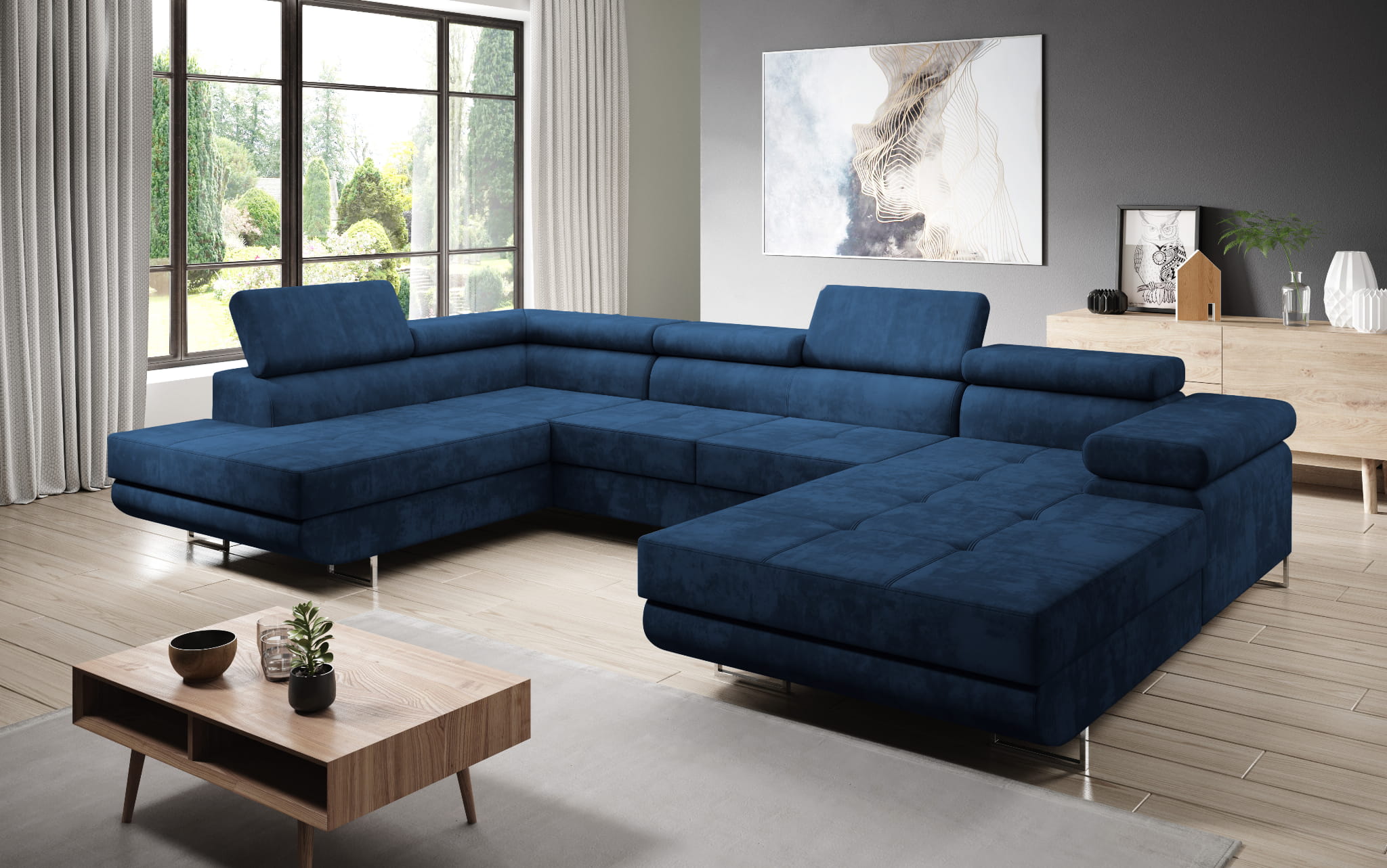 Narożnik LOTUS U XL z Funkcją Spania Nowoczesny Do Salonu Niebieski