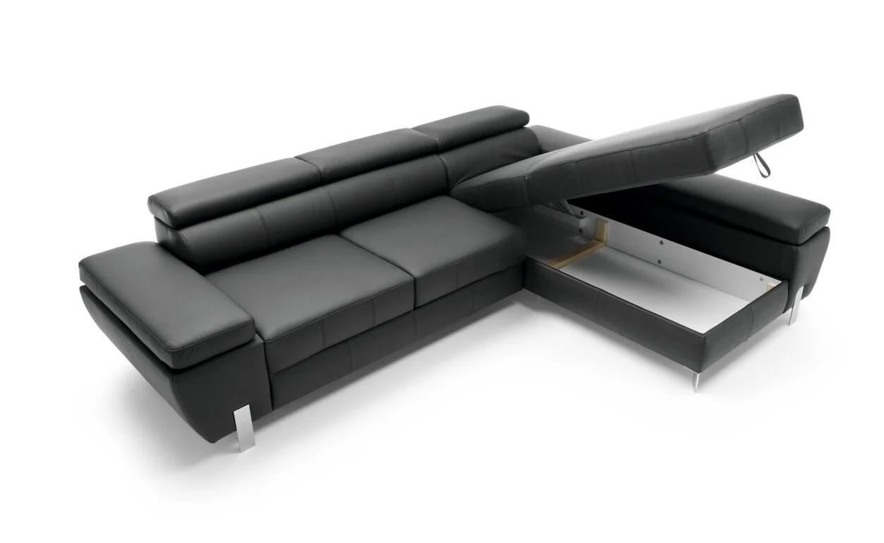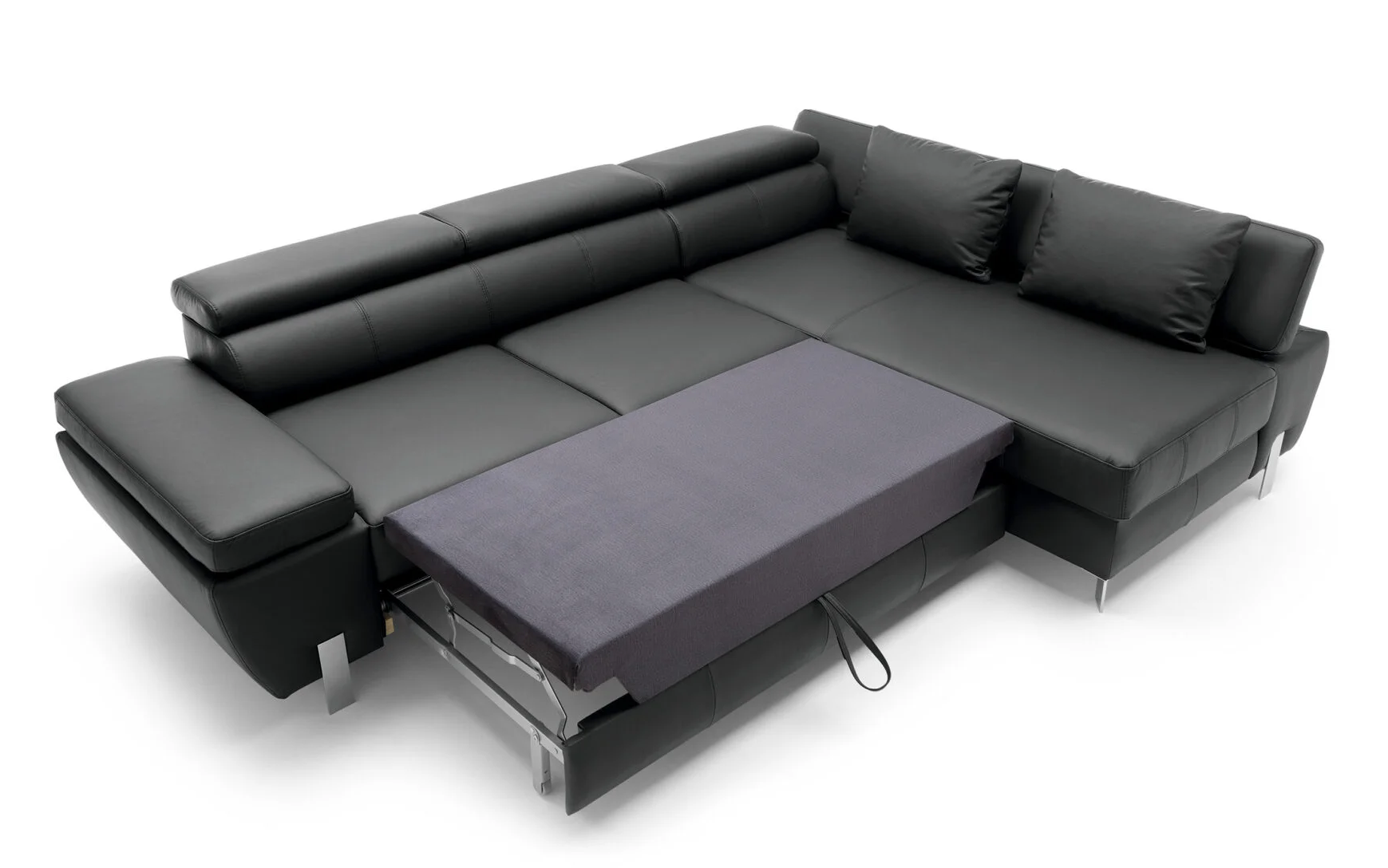 Narożnik MOLINA MINI w Skórach Naturalnych Funkcja Spania Pojemnik Na Pościel