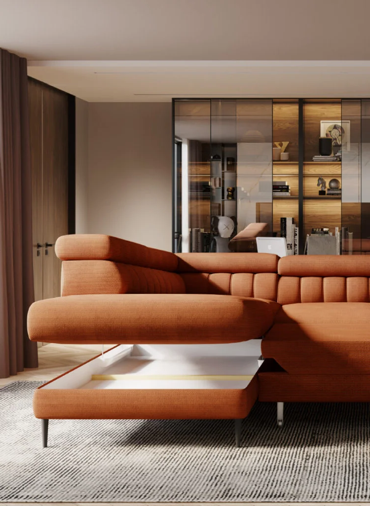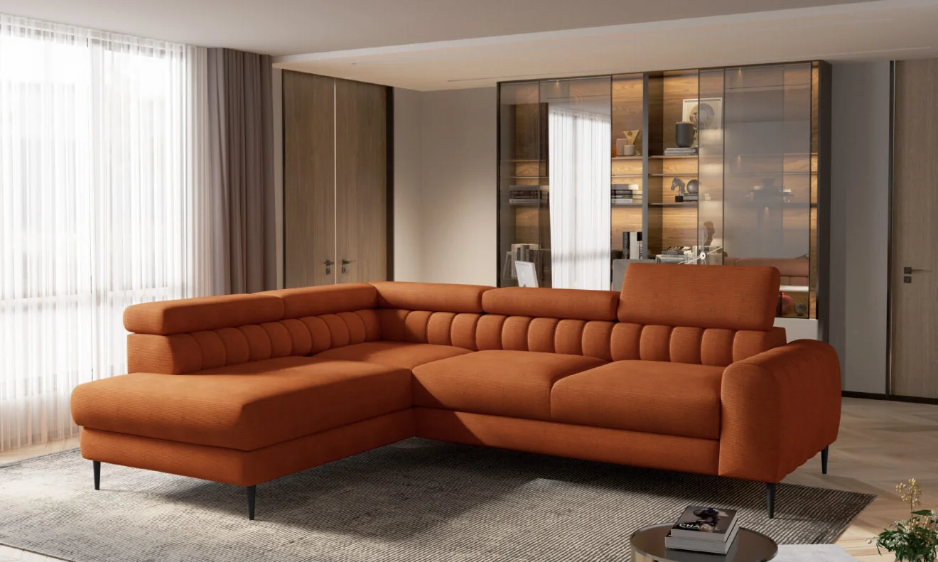 Narożnik NAVAS L Funkcja Spania Pojemnik Ruchomy Zagłówek Nowoczesny