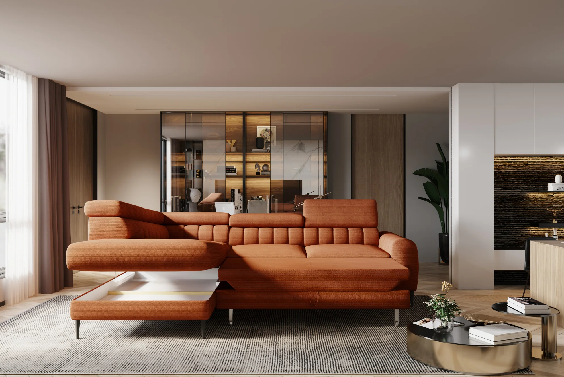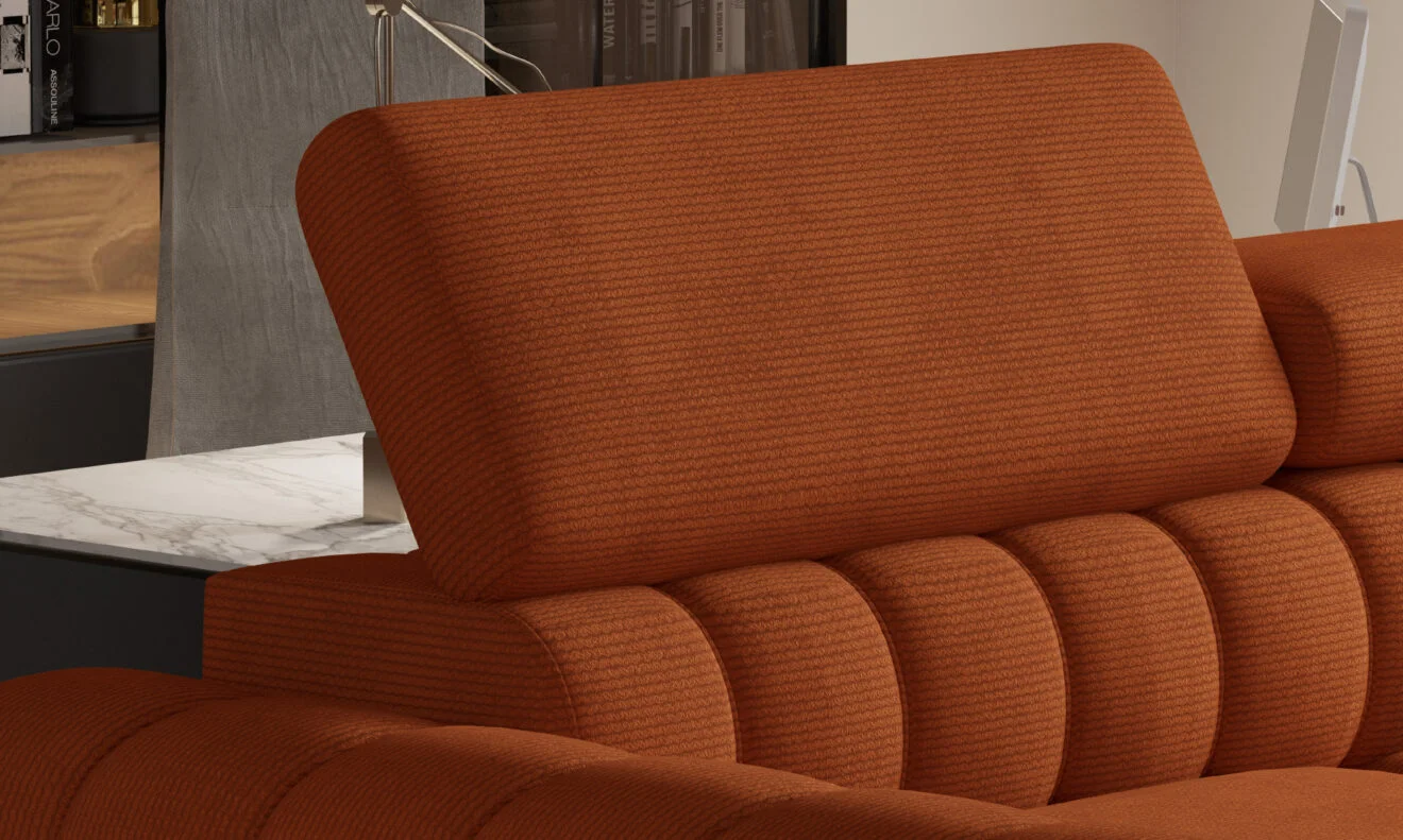 Tapicerowany tył narożnika NAVAS L sprawia, że prezentuje się on imponująco z każdej strony.