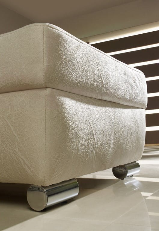Narożnik wolnostojący, osadzony na ozdobnych chromowanych nóżkach, dostępny w wersji prawej i lewej.
