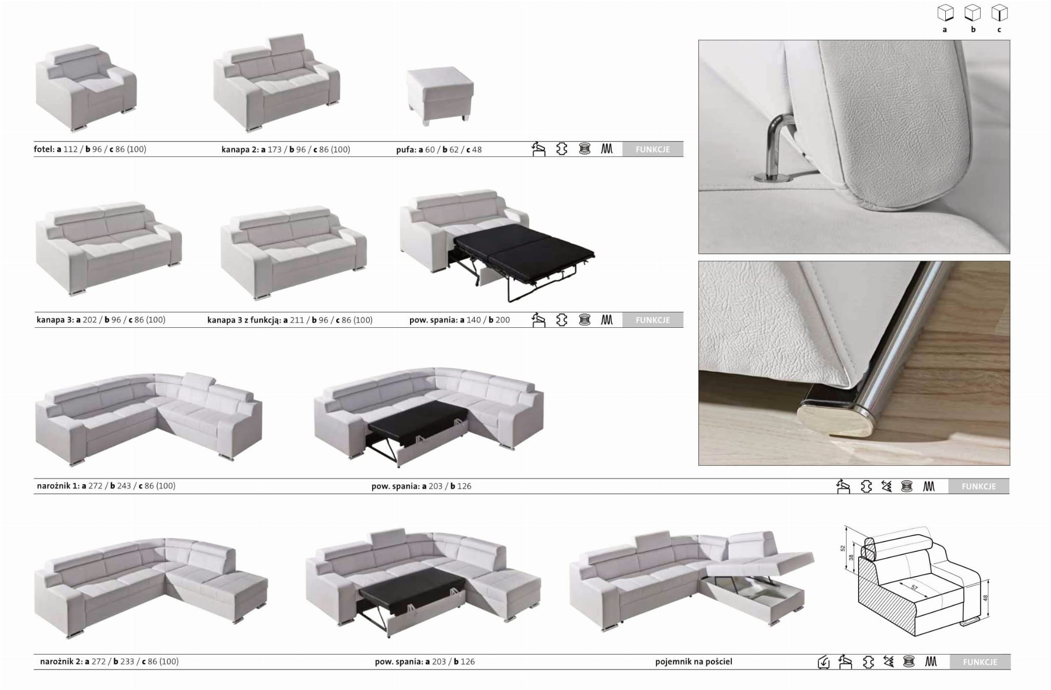 Meble w tym zestawie posiadają regulowany zagłówek.