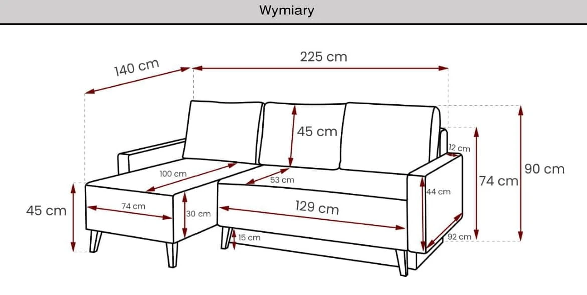 Narożnik został wyposażony w jedną z większych na rynku funkcji spania o powierzchni 140 x 200 cm, dzięki takim rozmiarom wygodnie można przespać całą noc.
