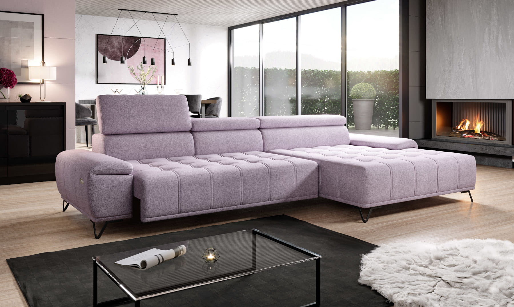 Narożnik PALLADIO MINI z funkcją elektrycznie regulowanej głębokości siedziska.