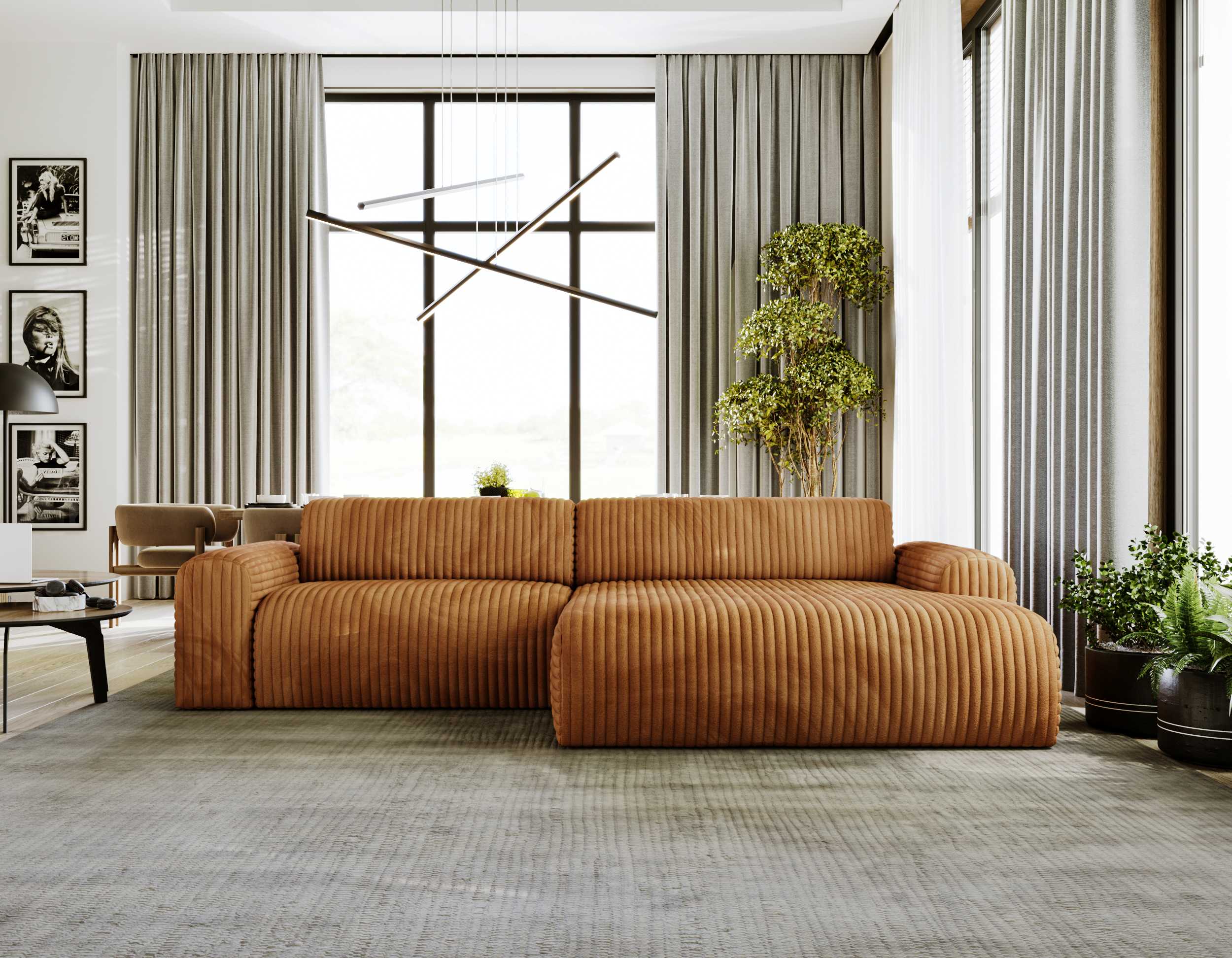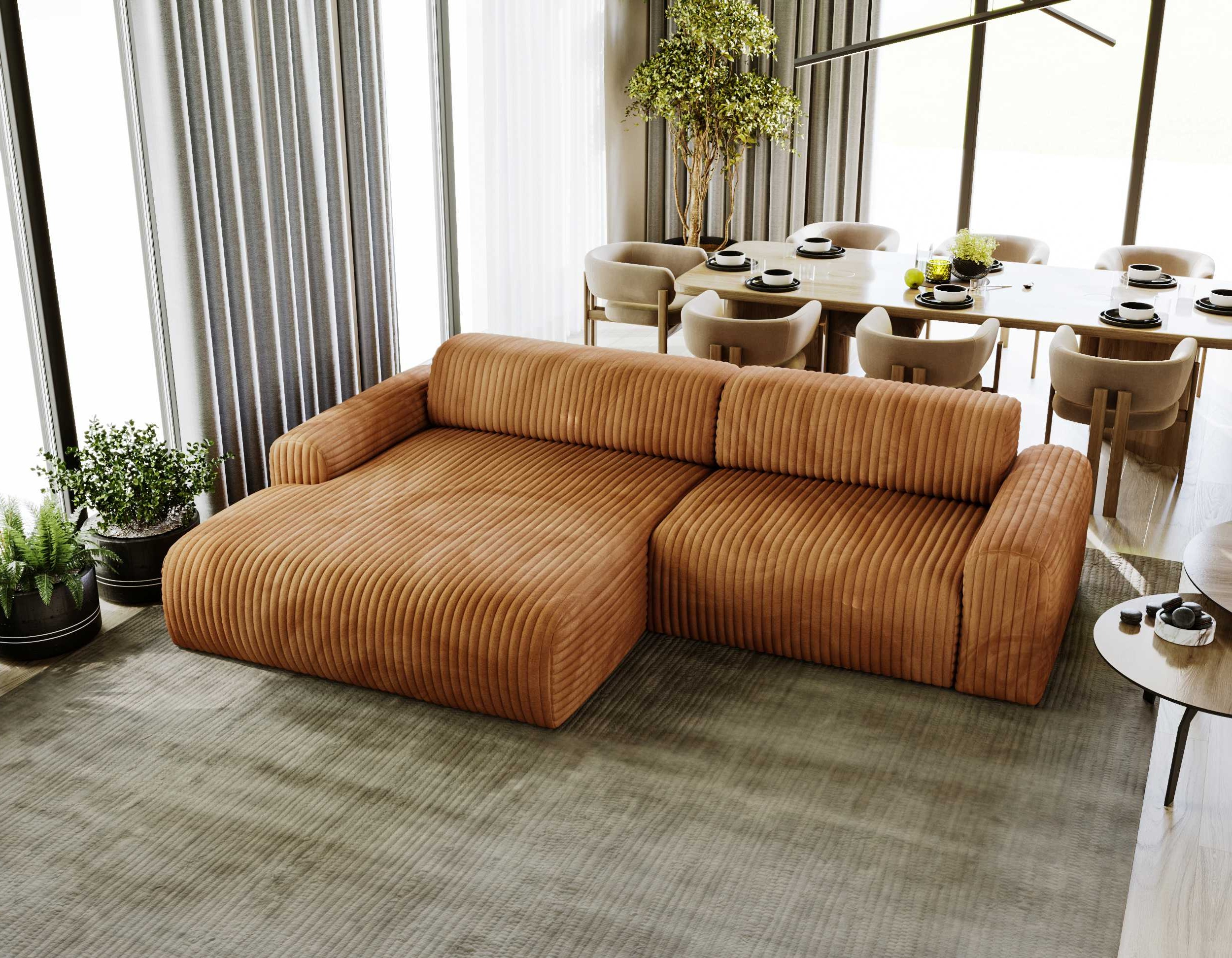 Narożnik PASSION Szerokość 285 cm Miedziany Nowoczesny Do Salonu Styl Boho Sztruks
