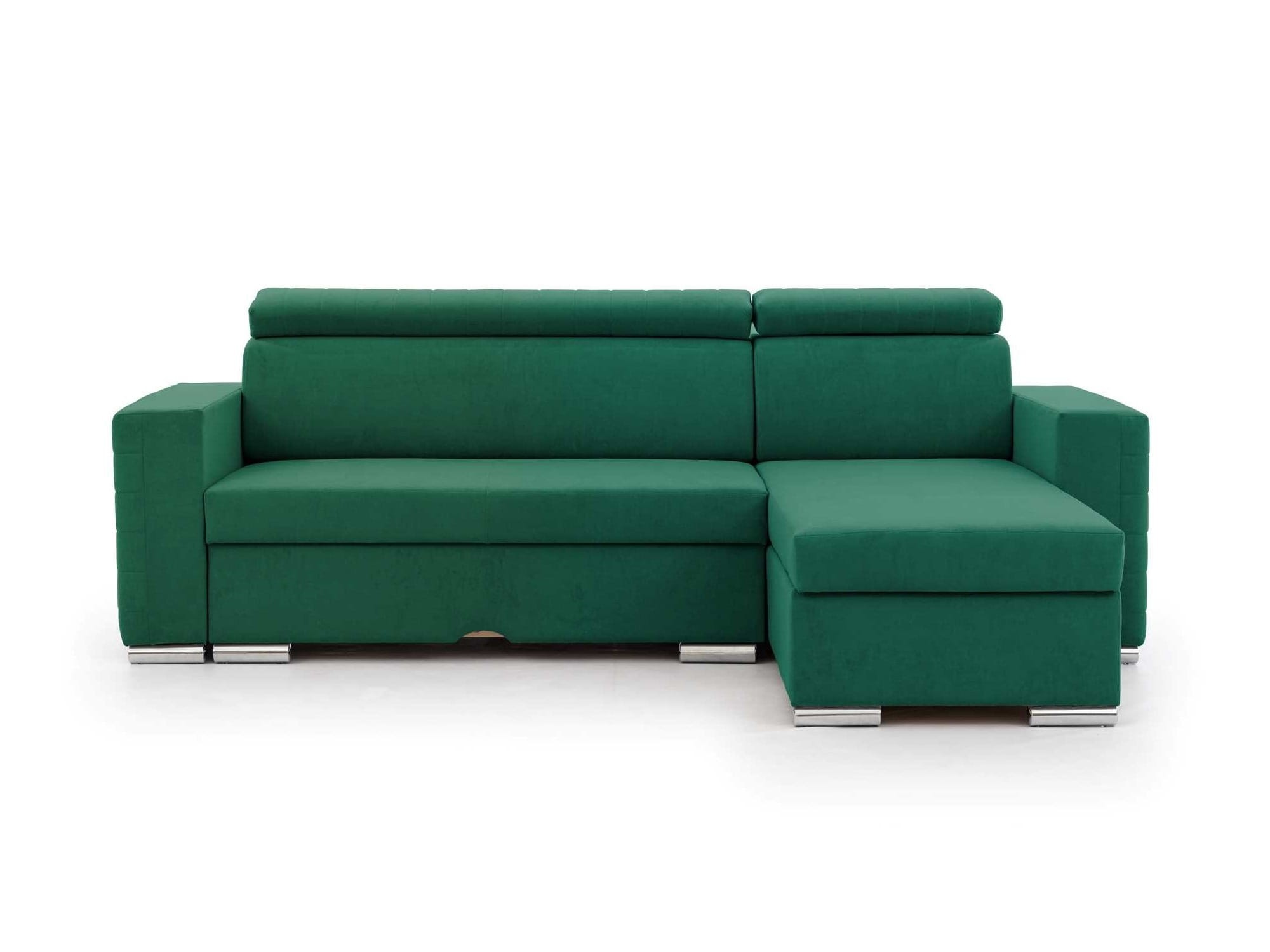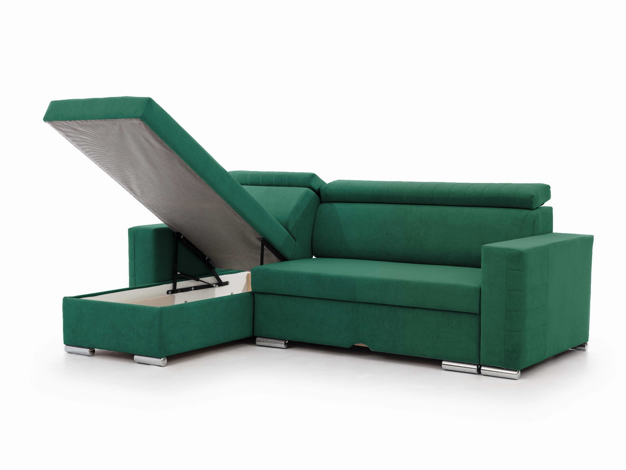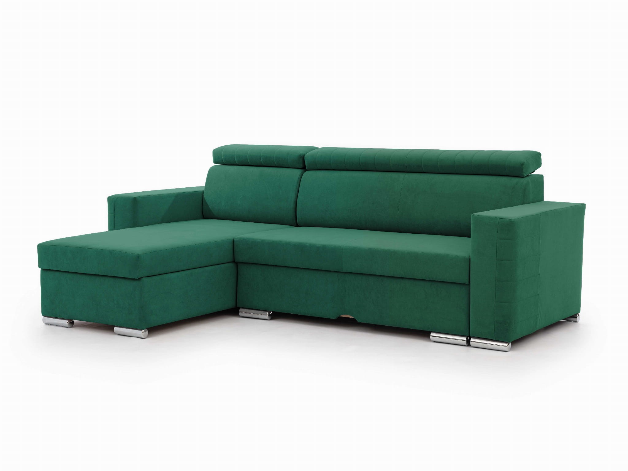 Narożnik PESARO Regulowany Zagłówek Pojemnik Funkcja Spania Do Salonu Zielony Tkanina Camelia 17155