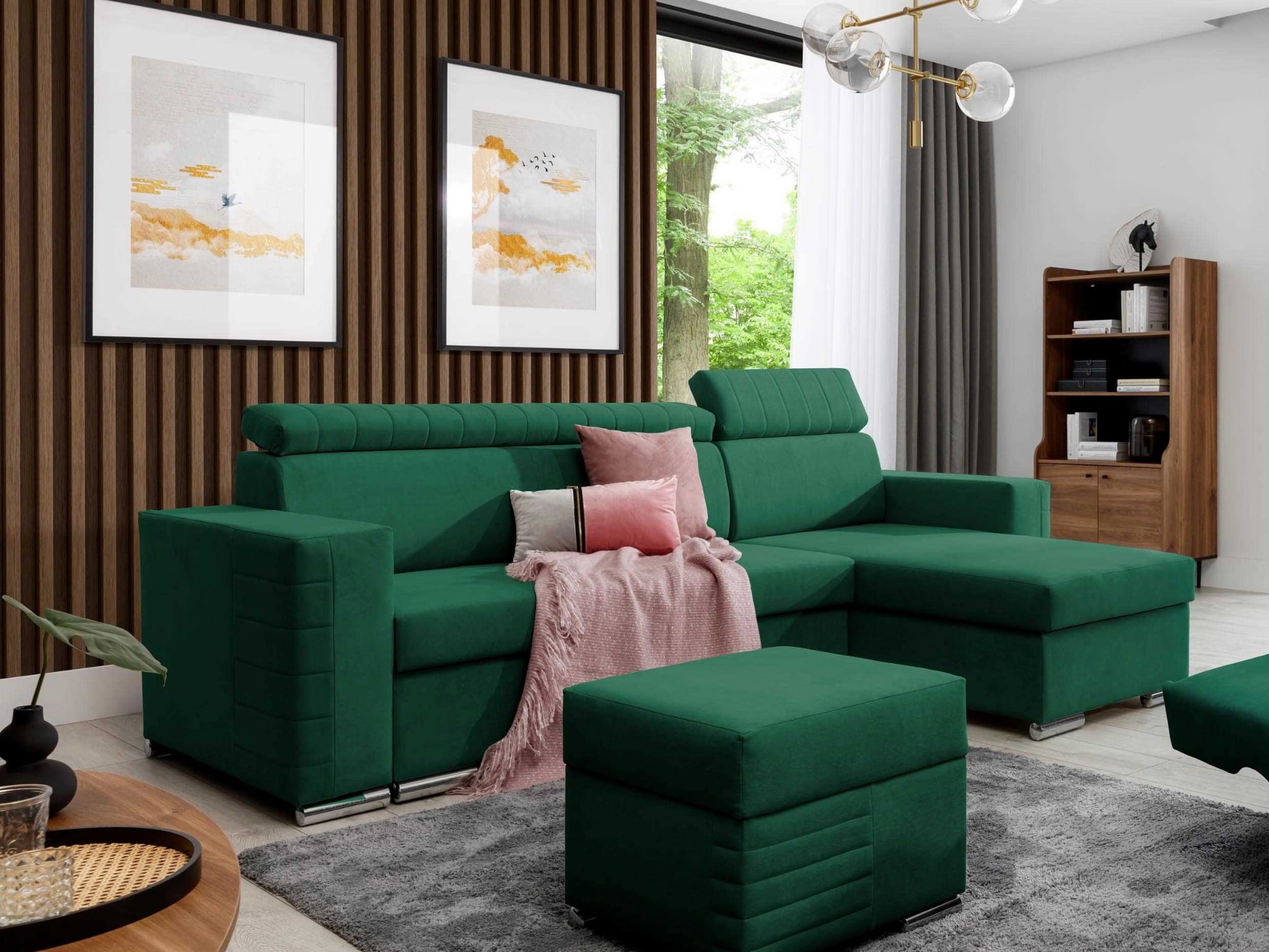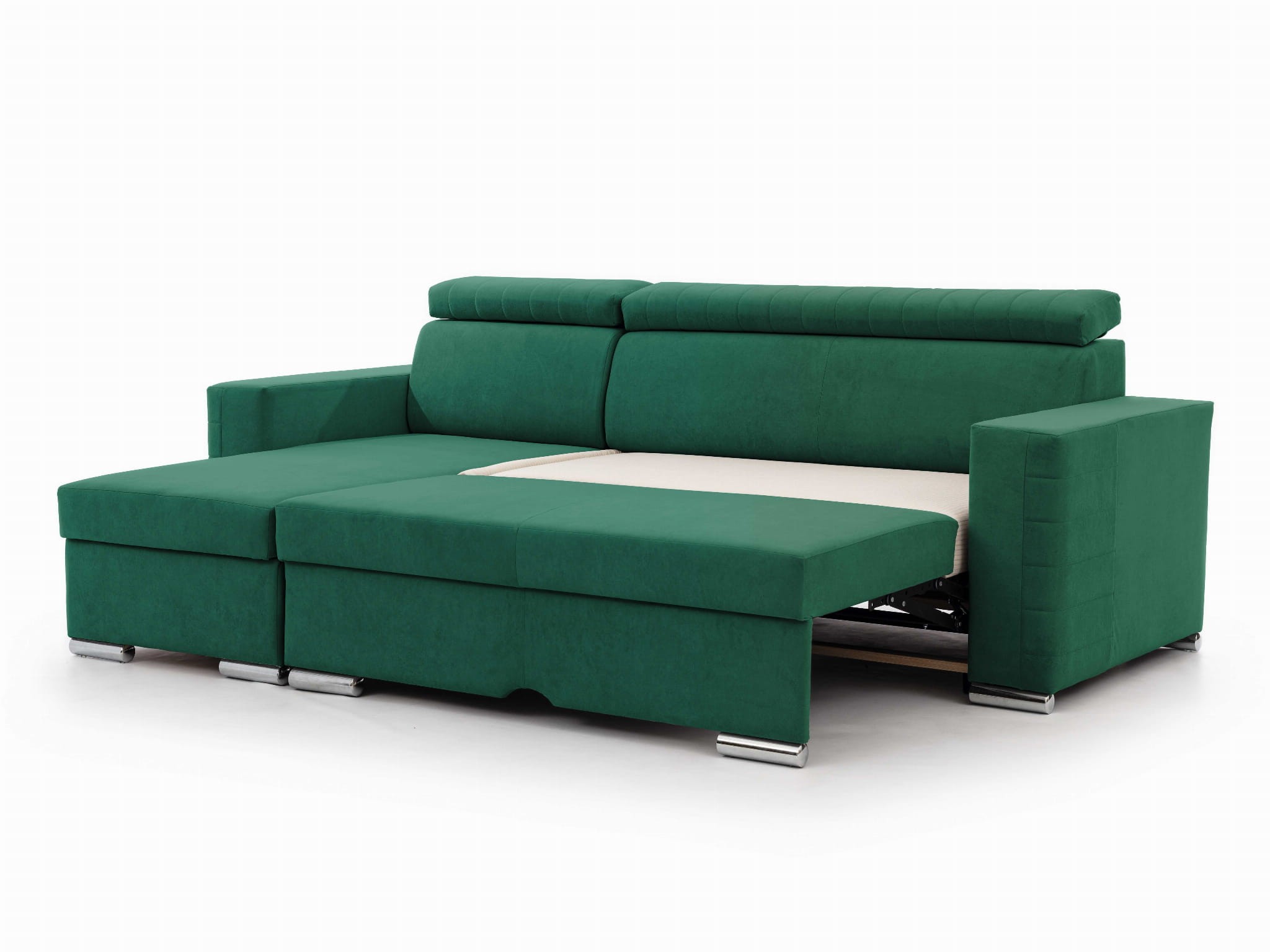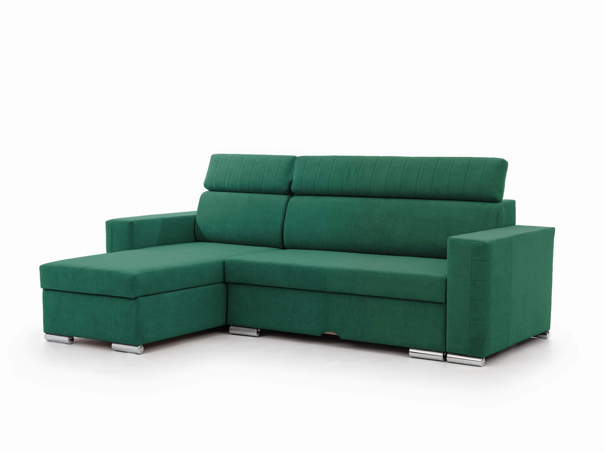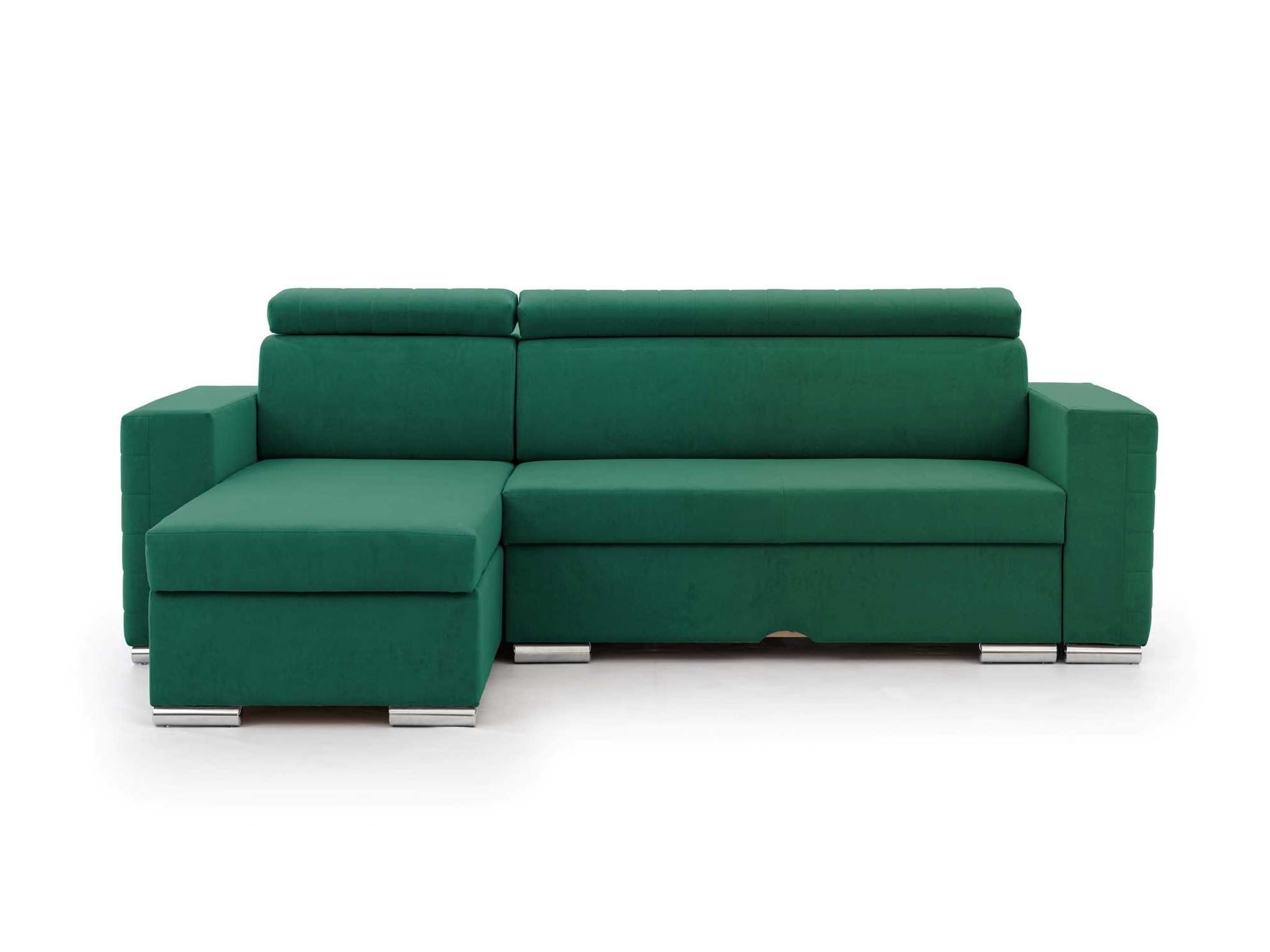Narożnik PESARO Regulowany Zagłówek Pojemnik Funkcja Spania Do Salonu Zielony Tkanina Camelia 17155