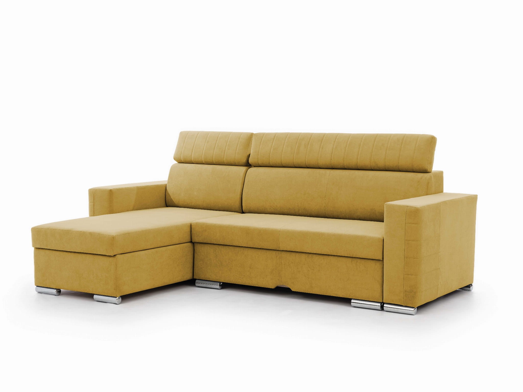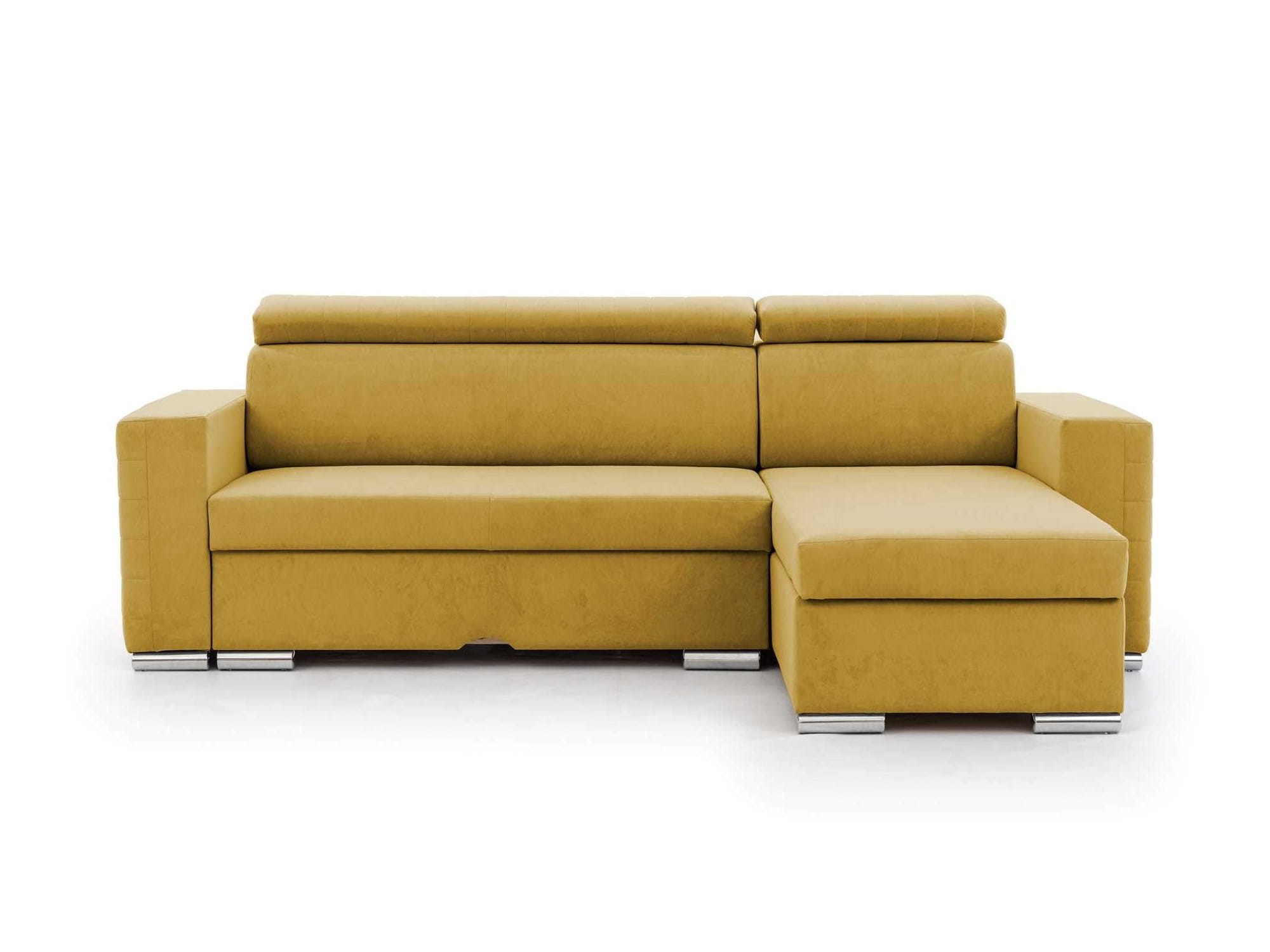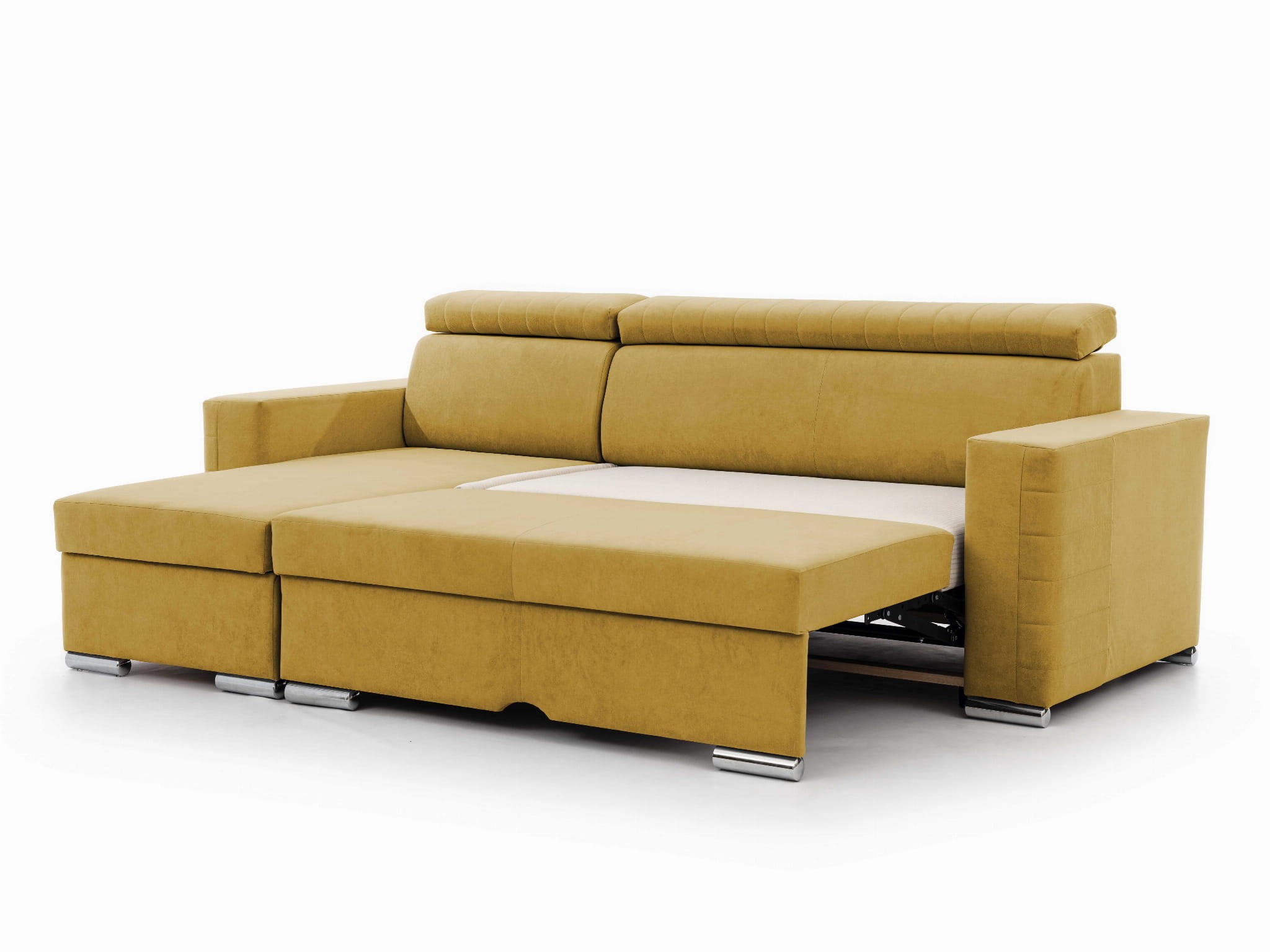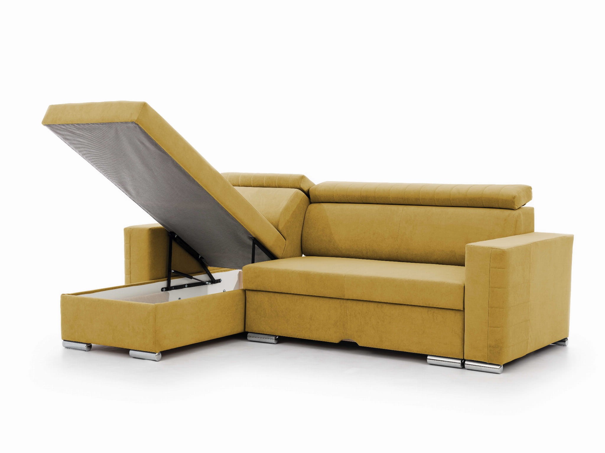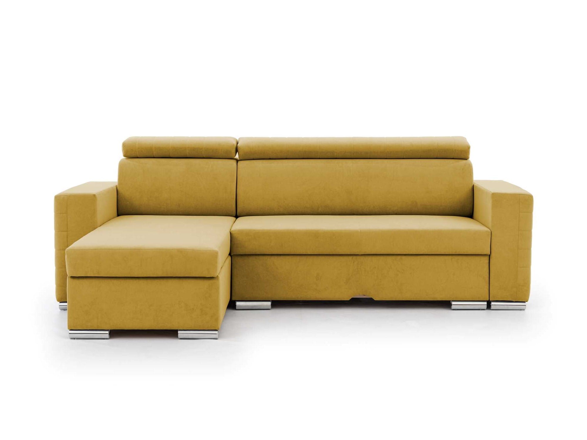 Narożnik PESARO Regulowany Zagłówek Pojemnik Funkcja Spania Do Salonu Żółty Tkanina Camelia 17158