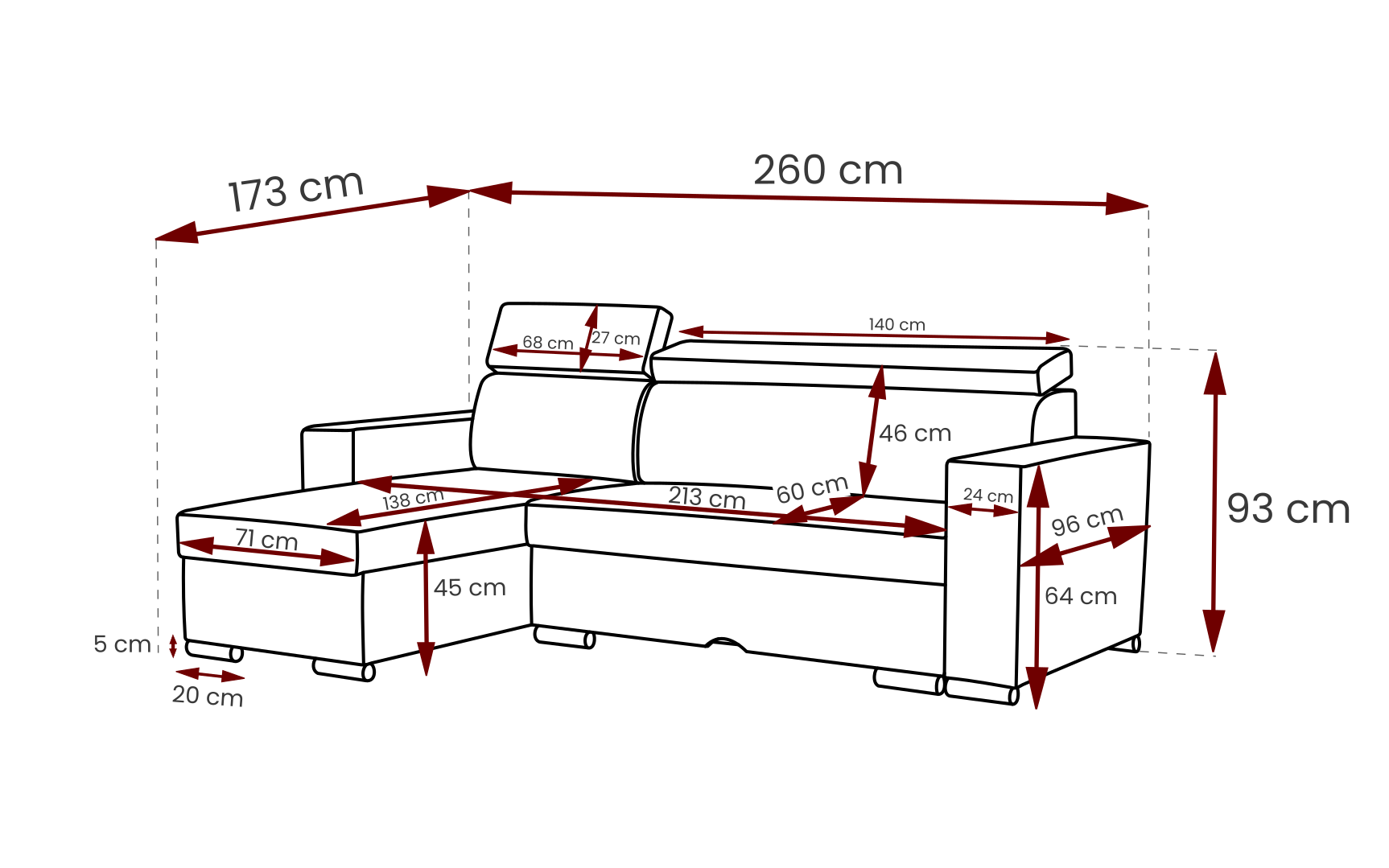 Narożnik wolnostojący PESARO to nie tylko elegancki dodatek do salonu, ale także mebel o wyjątkowych możliwościach. Dzięki swojej klasycznej formie osadzonej na metalowych nóżkach, narożnik ten staje się centralnym punktem każdego wnętrza. Co więcej, jego funkcja spania sprawia, że świetnie nadaje się do codziennego relaksu, jak i przyjmowania gości na noc. Dodatkowo narożnik wyposażony jest w praktyczny pojemnik na pościel, co czyni go niezwykle funkcjonalnym rozwiązaniem.