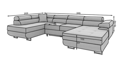 Z wymiarami 345 x 202 x 90 cm, narożnik RODRIGO to idealny wybór do większych salonów, gdzie może pełnić rolę dominującego elementu wystroju. Jego forma litery U sprzyja wspólnemu spędzaniu czasu – idealna do rodzinnych spotkań, seansów filmowych czy po prostu odpoczynku po pracy. To także świetny wybór do wnętrz w stylu glamour, gdzie liczy się blask, harmonia i elegancja.