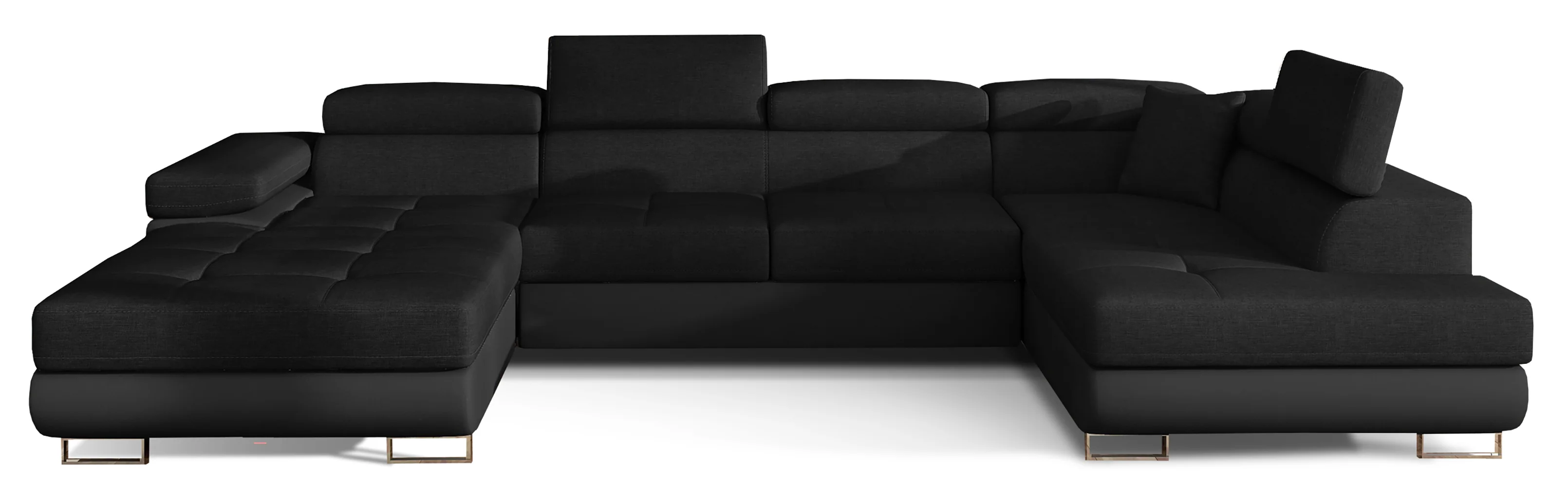 Narożnik RODRIGO Tkanina Sawana 14 + Soft 11 Czarny Funkcja Spania Regulowane Zagłówki