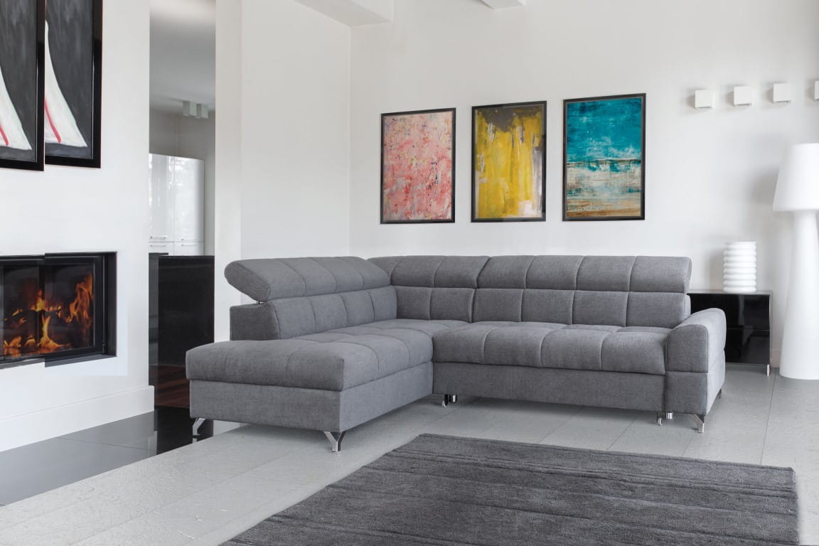 Narożnik SEMPRE Do Salonu Funkcja Spania Regulowany Zagłówek