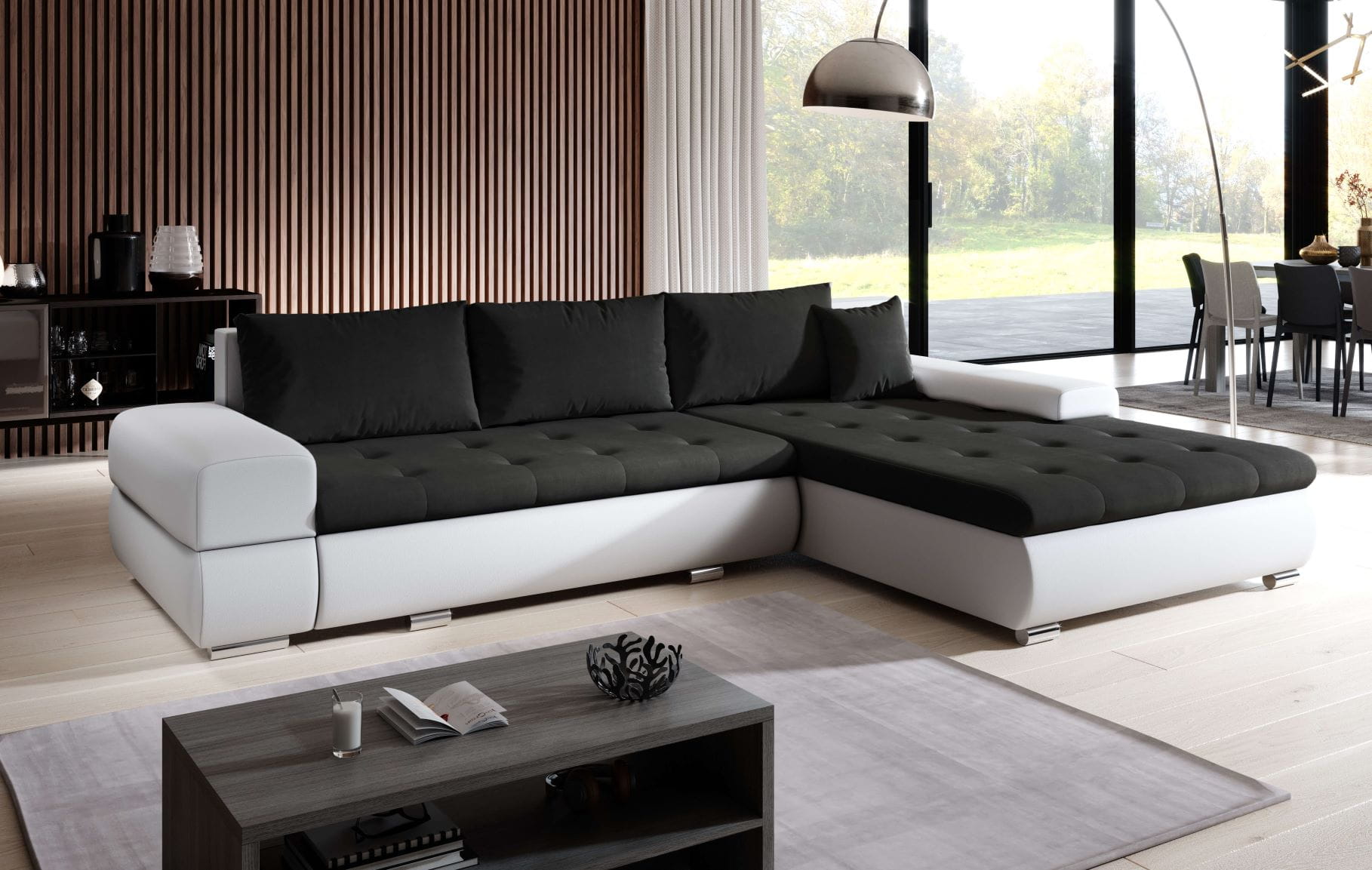 Narożnik SORENTO z Funkcja Spania Nowoczesny Do Salonu Szeroki Szezlong Czarny Biały
