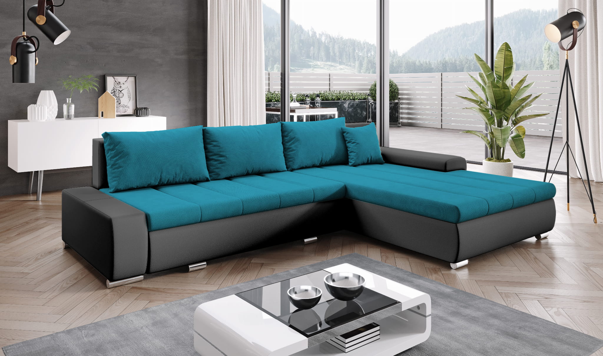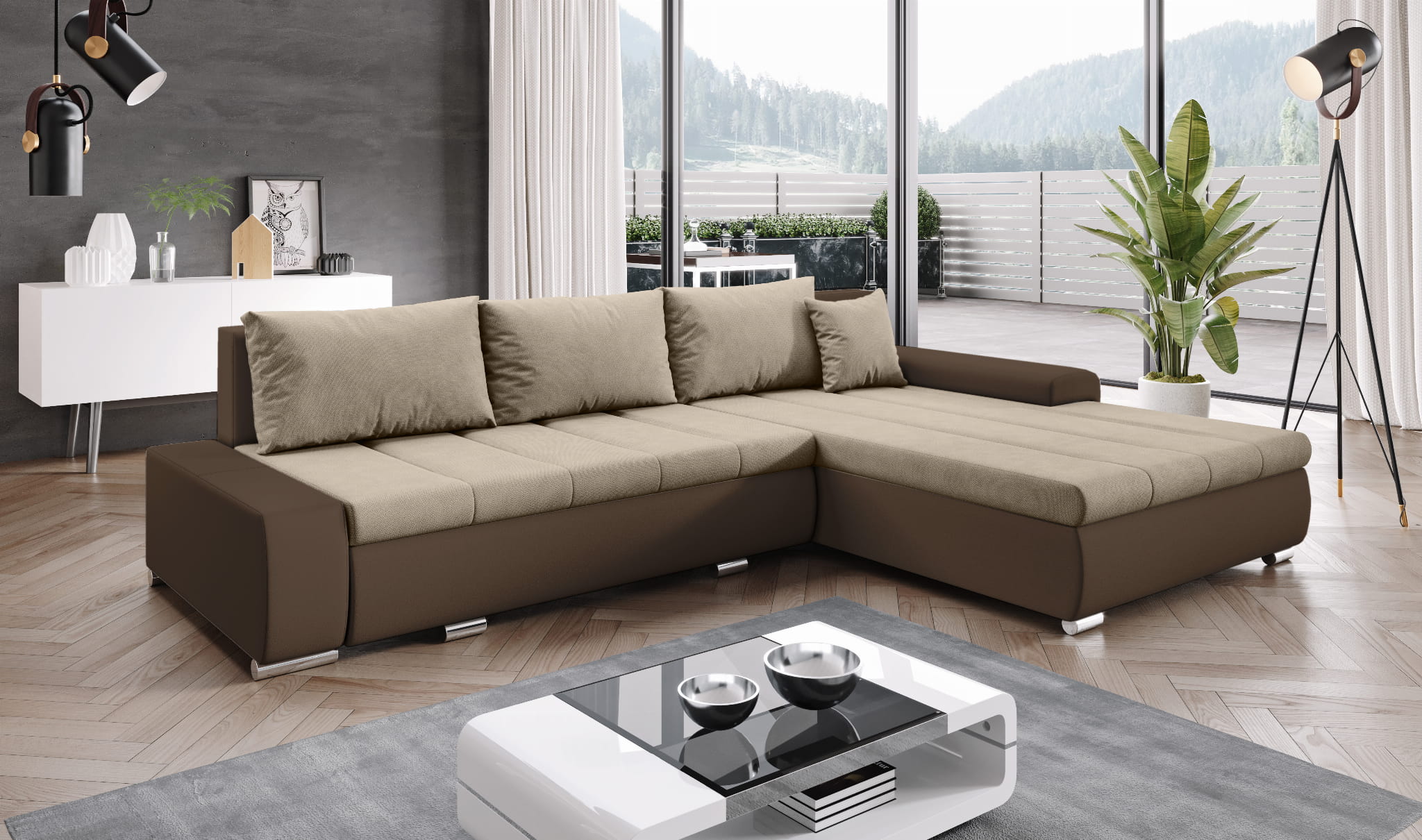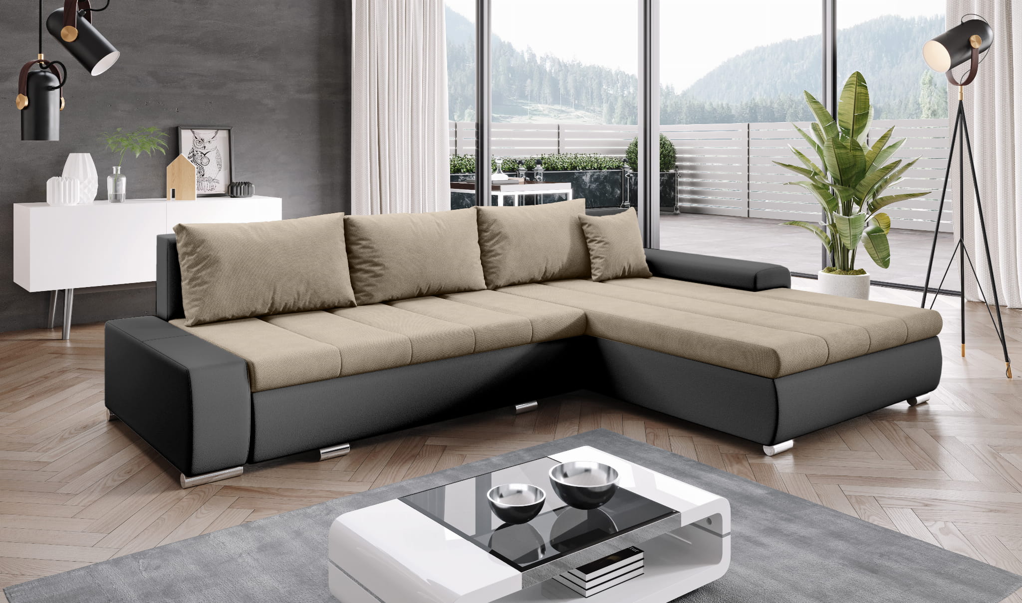 Narożnik wypoczynkowy ToSKANIA L z funkcją spania oraz pojemnikiem na pościel,