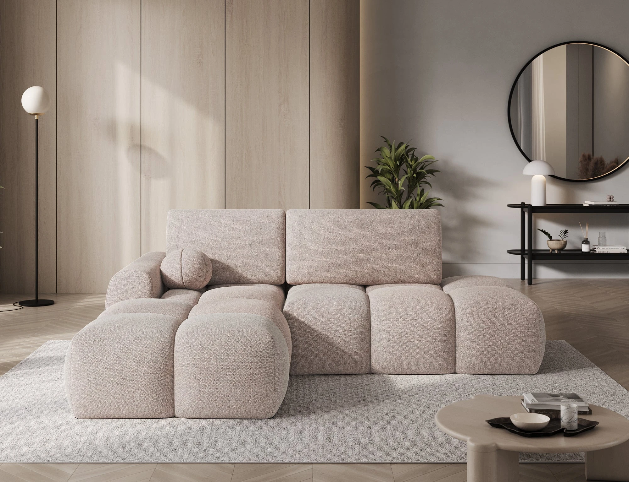Nowoczesny narożnik VITTARIO to wyjątkowe połączenie miękkiej, obłej formy w stylu modern soft living i praktycznej funkcjonalności, która sprawdzi się w codziennym użytkowaniu. Jego elegancki kształt wprowadza do wnętrza harmonię i lekkość, a starannie dobrane materiały gwarantują komfort, który czuć od pierwszego momentu.