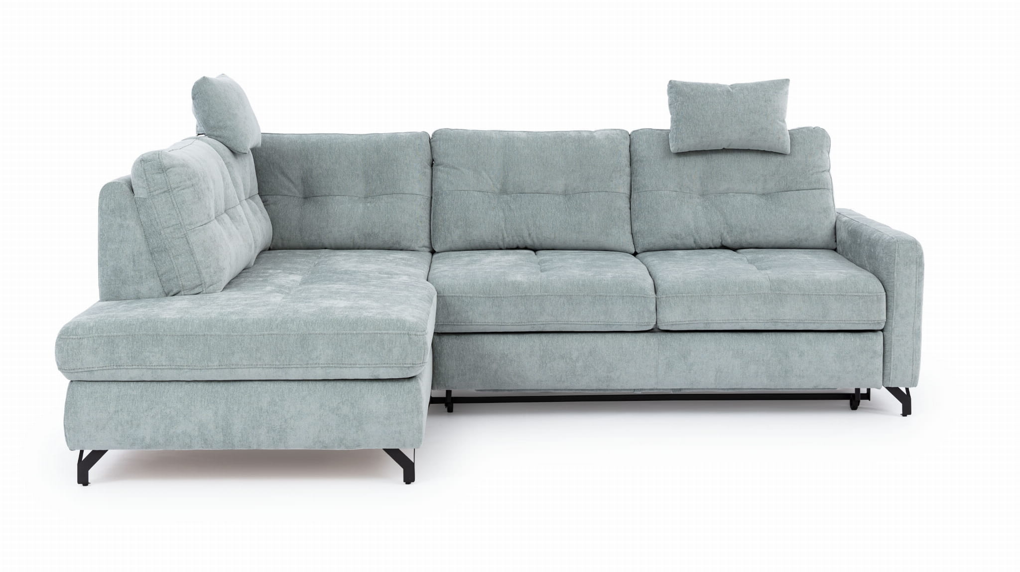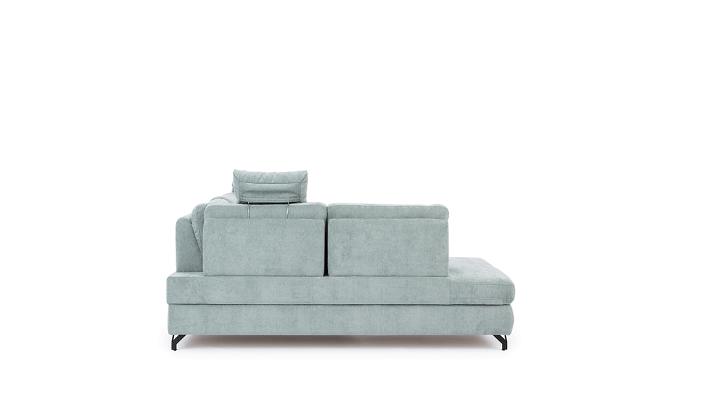 Jeśli zdarza Ci się gościć rodzinę lub znajomych, ten narożnik z funkcją spania będzie dla Ciebie bardzo pomocnym rozwiązaniem. Posiada on łatwy w obsłudze mechanizm, który pozwala w kilka chwil zmienić wygodną kanapę w szerokie miejsce do nocowania. Dodatkowo ten narożnik z pojemnikiem ma pod siedziskiem spory schowek, w którym bez trudu zmieścisz kołdry oraz poduszki, co znacznie ułatwia zachowanie porządku w salonie na co dzień.